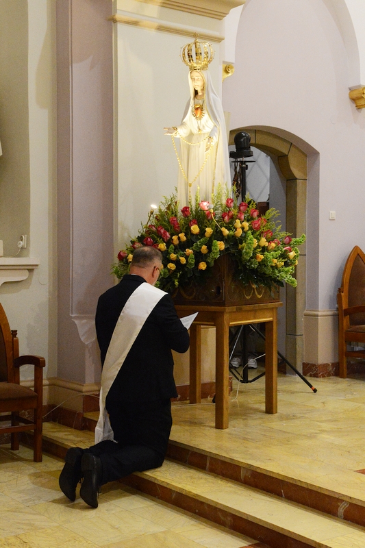 Po Komunii świętej Przewodniczący Zarządu Regionu Podkarpacie NSZZ „Solidarność” w Krośnie Krzysztof Fal, klęcząc przed Figurą Fatimskiej Pani, zawierzył Jej wszystkich ludzi pracy i ich rodziny.