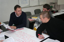 Volkswagen Motor Polska Sp. z o. o. w Polkowicach, DFM Zanam-Legmet Sp. z o. o. w Polkowicach, Dolnośląskich Młynów SA w Ujeździe Górnym, Przedsiębiorstwa Gospodarki Miejskiej Sp. z o. o. w Polkowicach, Miejskiego Ośrodka Pomocy Społecznej w Legnicy, Wojewódzkiego Przedsiębiorstwa Energetyki Cieplnej w Legnicy SA i Energetyki Sp. z o. o. w Lubinie. Zajęcia prowadziły Ewa Gorzkowska z Działu Szkoleń Regionu Dolny Śląsk i Ewa Kosiorowska. Na zdjęciu wieże z papieru zbudowane przez uczestników podczas ćwiczenia będącego symulacją pracy zespołowej.