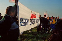 Solidarności zajmowały dwa sektory ozdobione flagami i