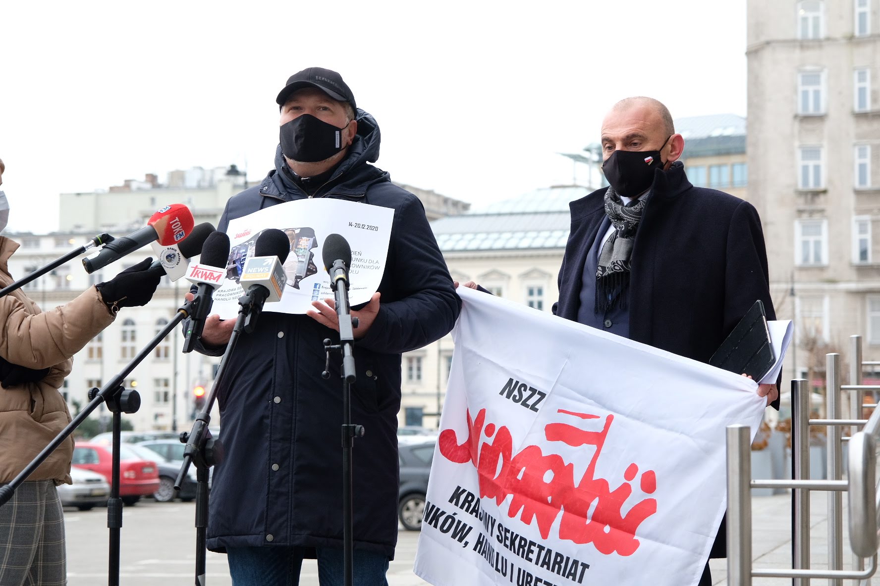 14 grudnia o godz. 9:30 odbyła się konferencja prasowa, którą organizowała Krajowa Sekcja Pracowników Handlu NSZZ „Solidarność” w pod Ministerstwem Rozwoju, Pracy i Technologii -Warszawa Plac Trzech Krzyży 3/5 Handlowa „Solidarność”.