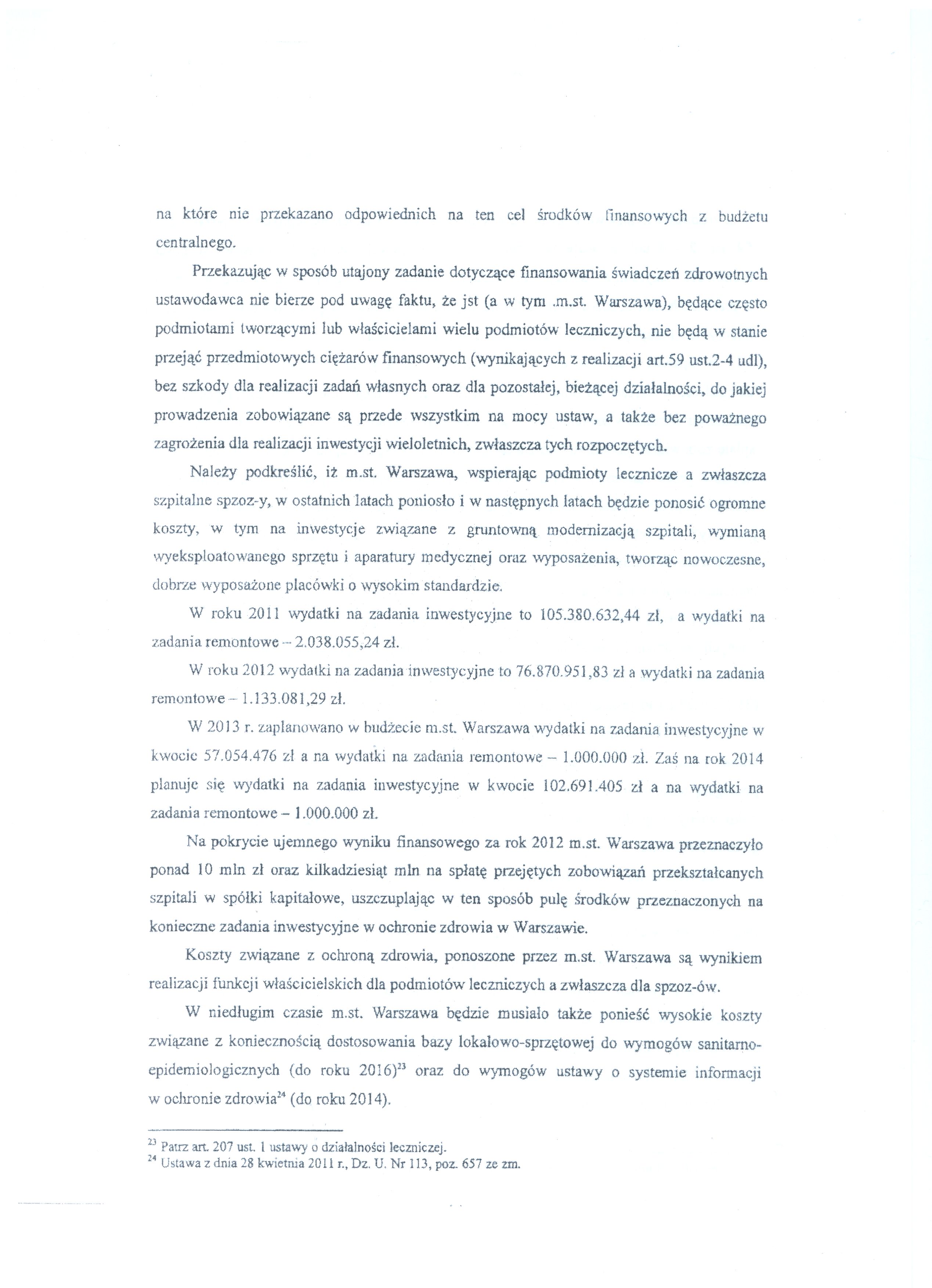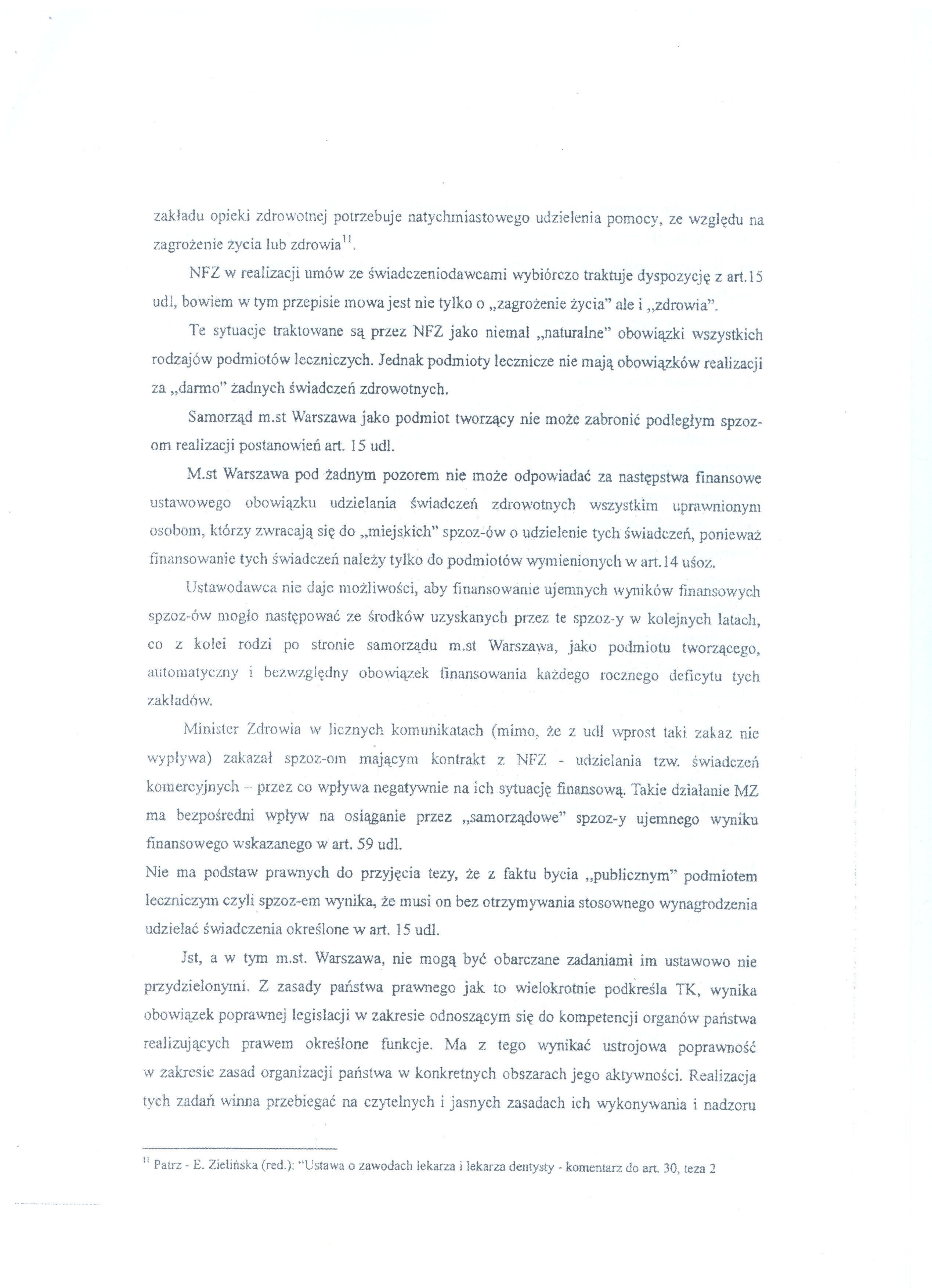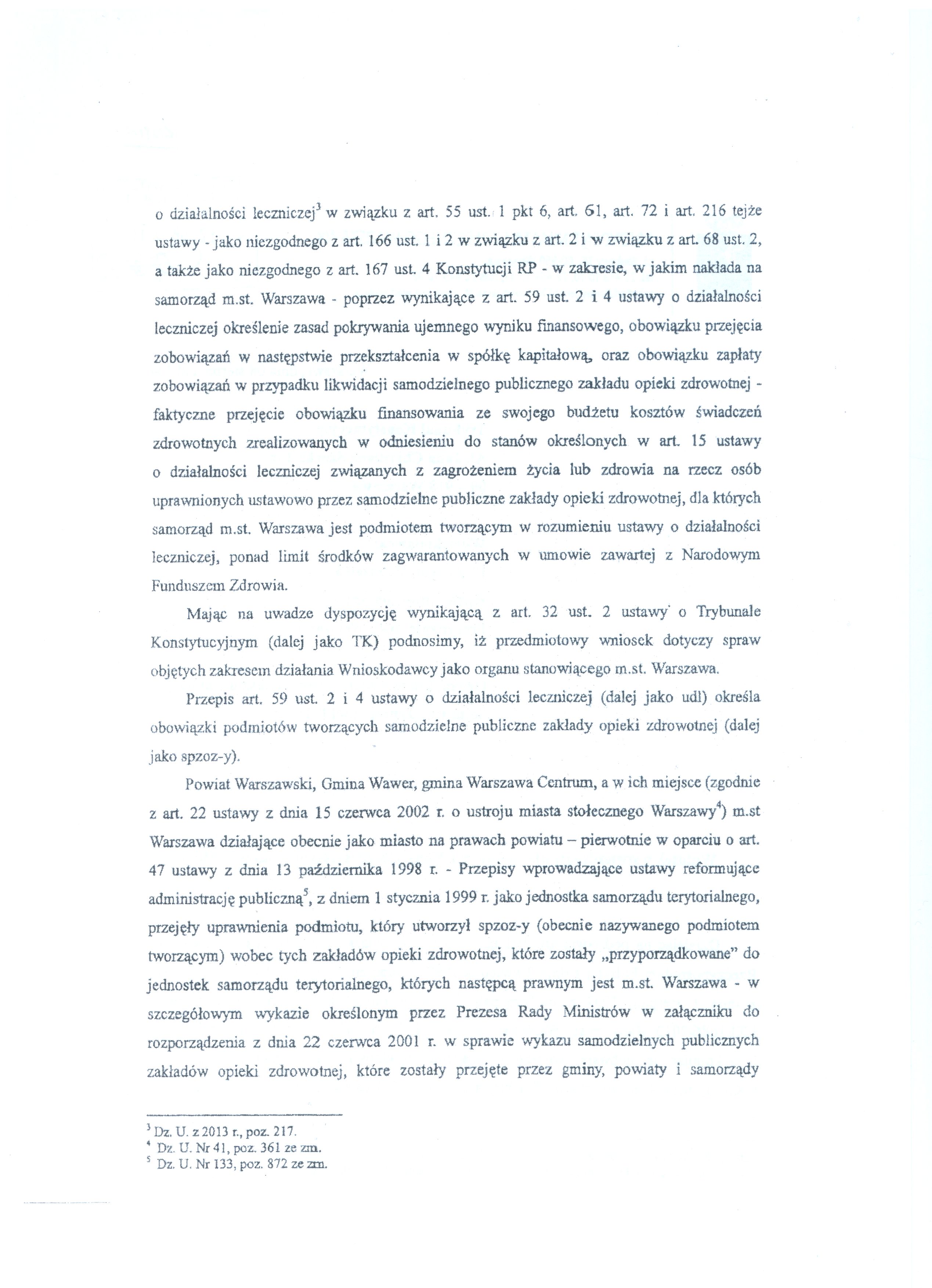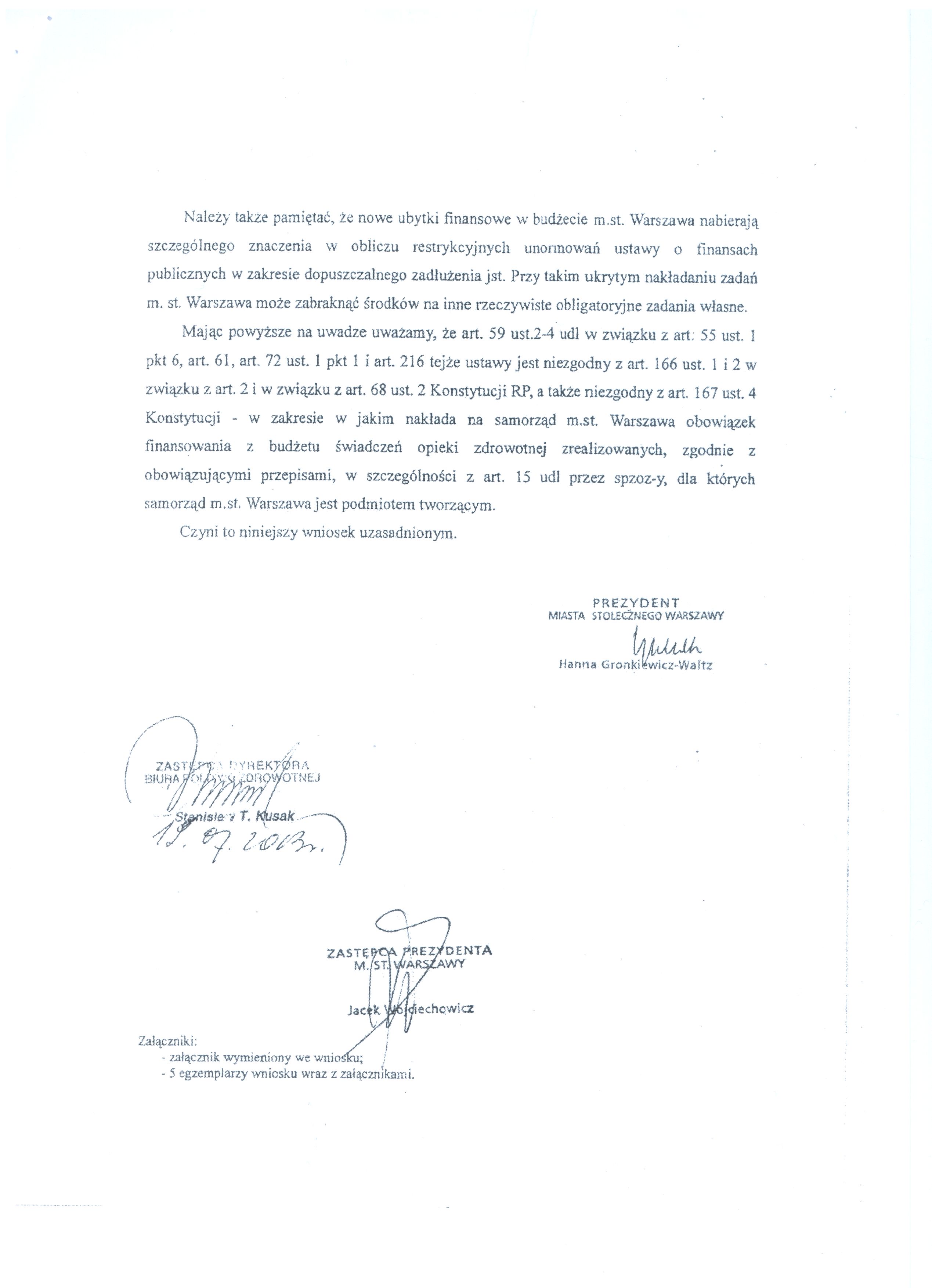 Poniżej publikujemy wniosek Prezydent m.st. Warszawy skarżący do Trybunału Konstytucyjnego niektóre zapisy ustawy o działalności leczniczej.