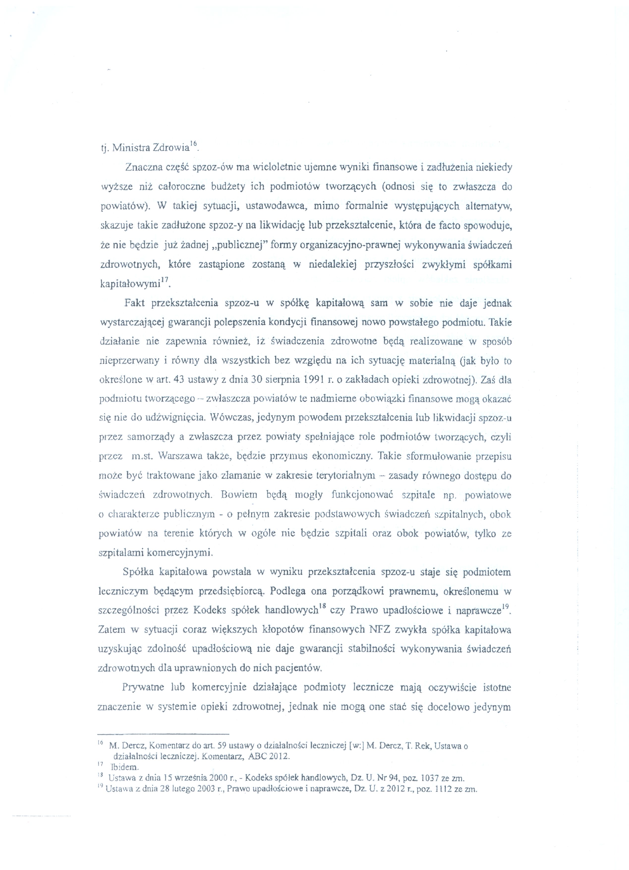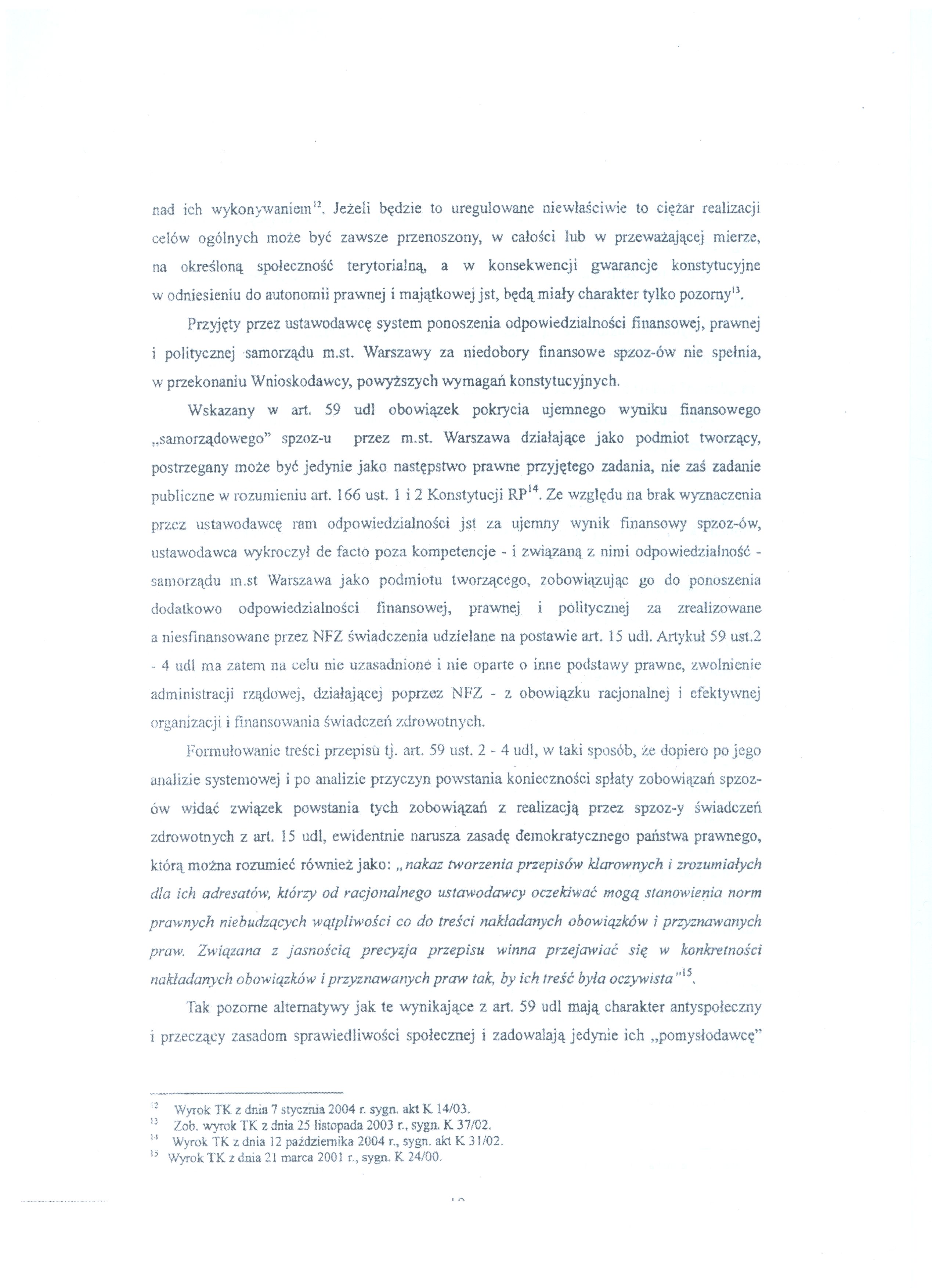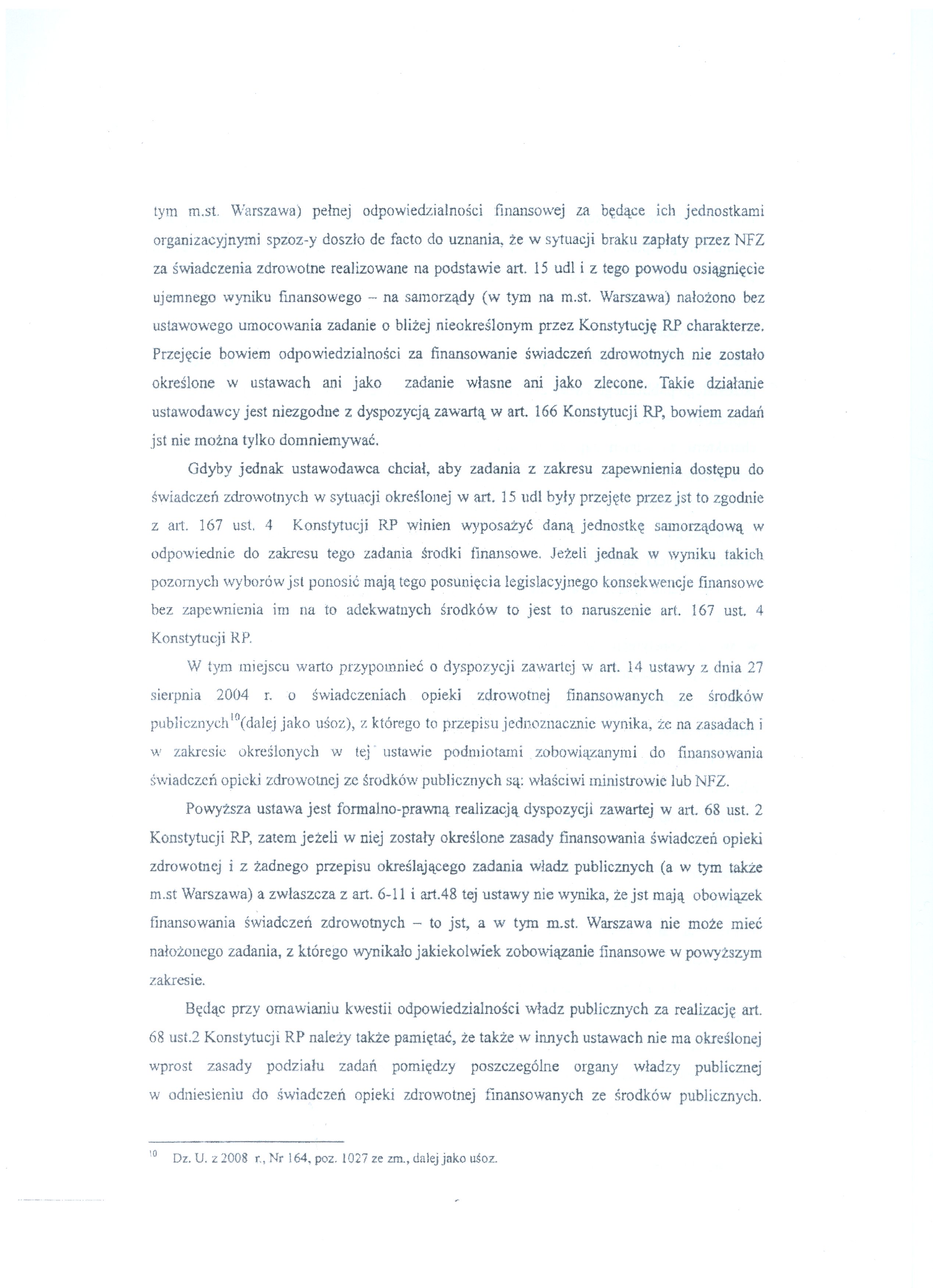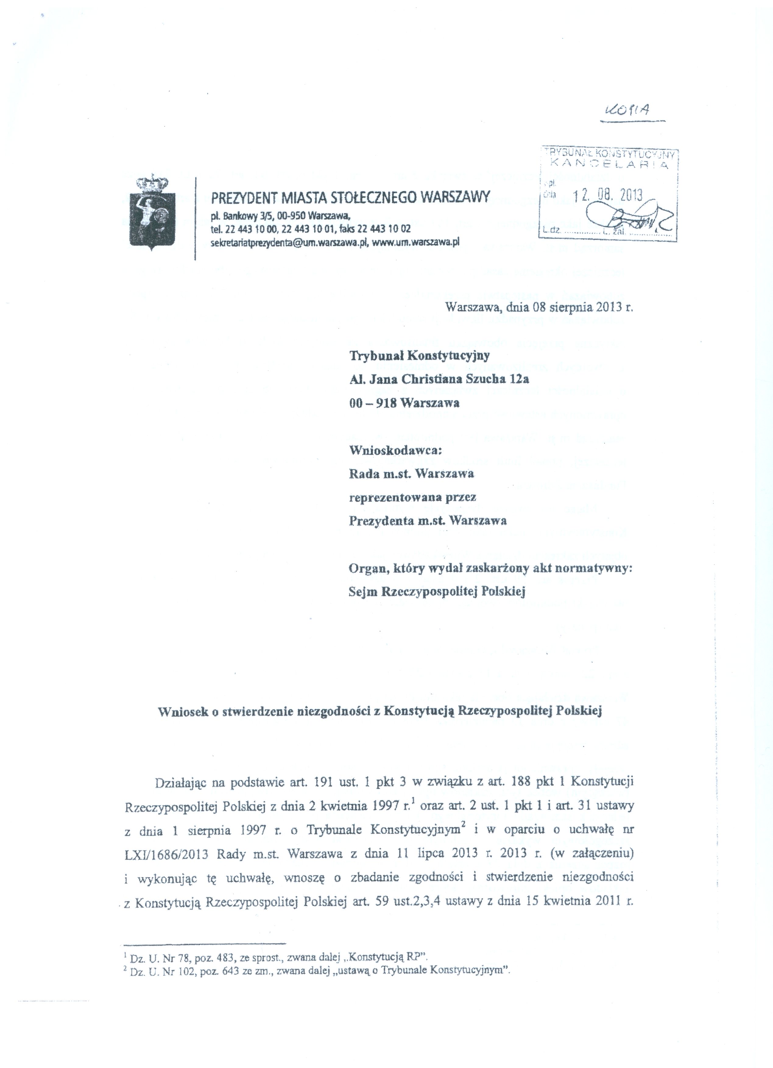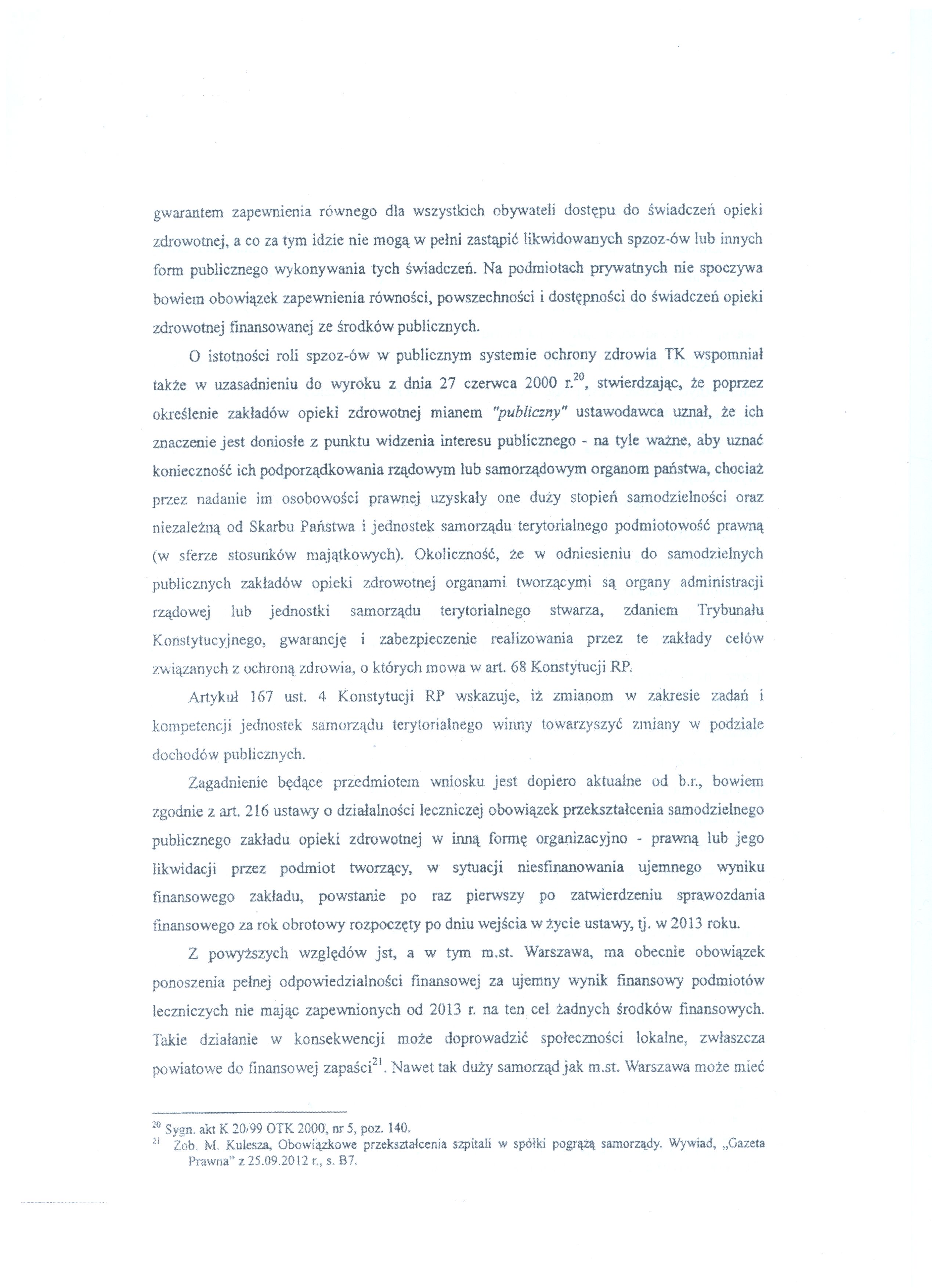 Poniżej publikujemy wniosek Prezydent m.st. Warszawy skarżący do Trybunału Konstytucyjnego niektóre zapisy ustawy o działalności leczniczej.
