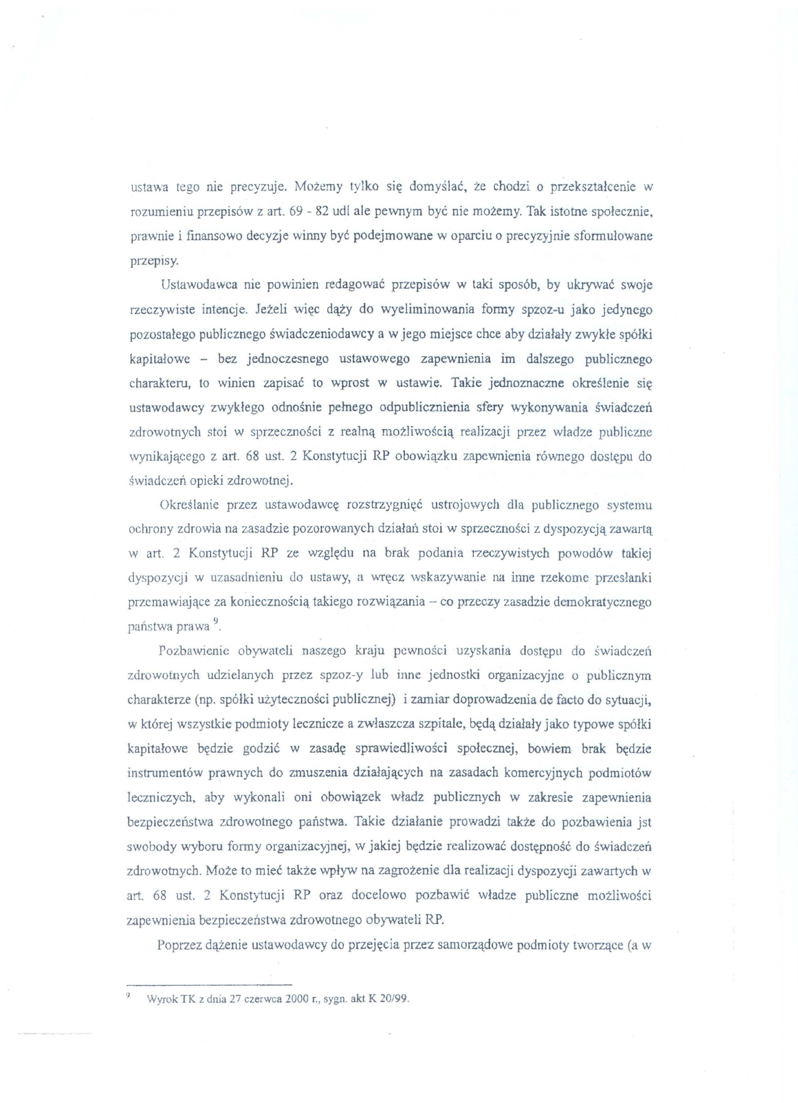 Trudno oprzeć się wrażeniu, że niektóre fragmenty wniosku łudząco przypominają uzasadnienie naszych opinii na temat tej ustawy.