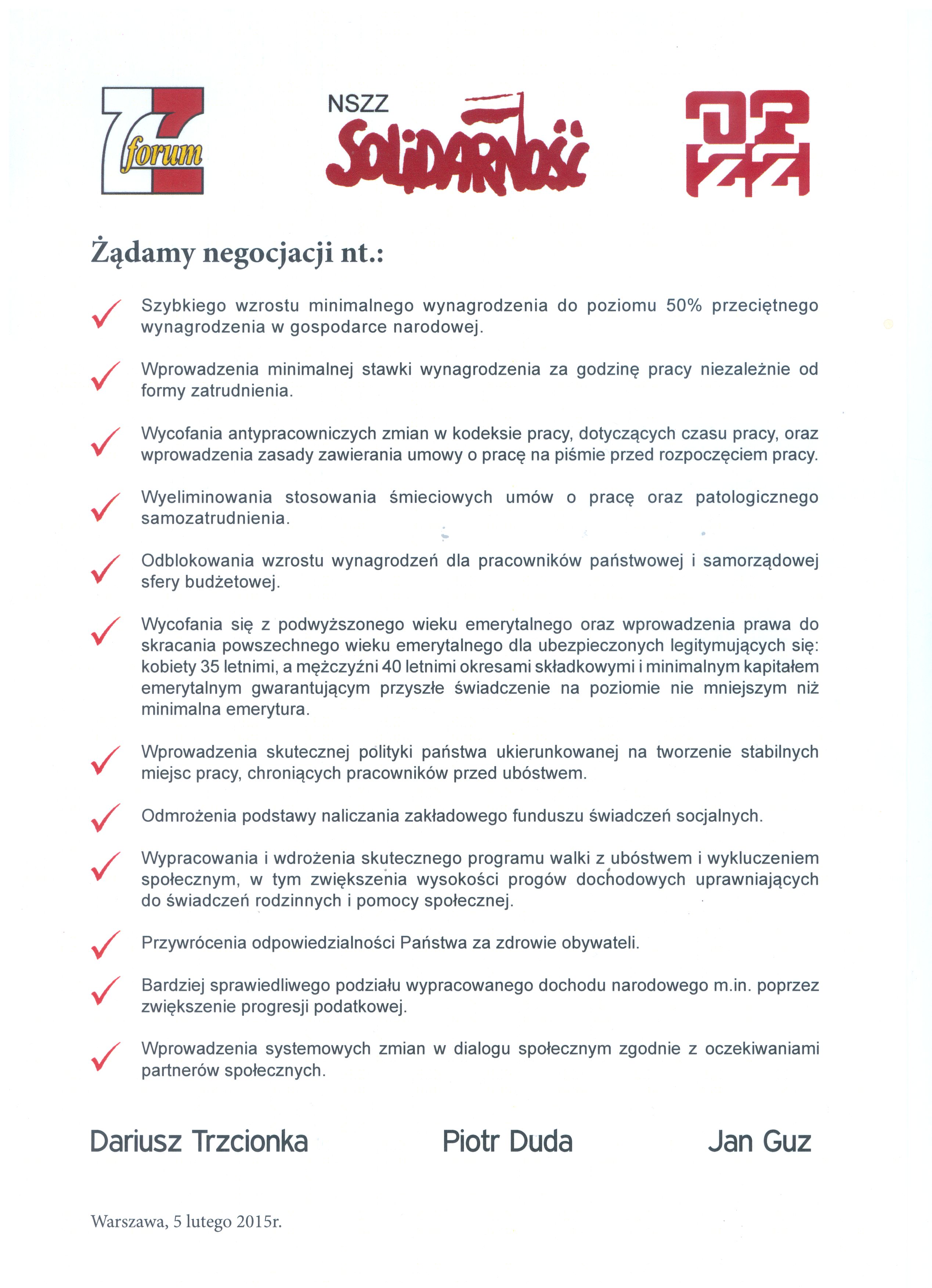 2015-02-17 09:40Postulaty trzech central zwiÄ…zkowych