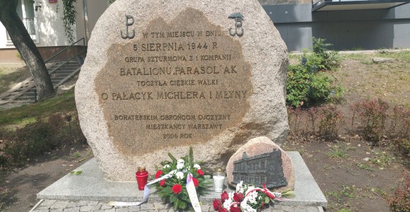 W południe, w przeddzień 71 rocznicy wybuchu Powstania Warszawskiego złożyliśmy kwiaty i zapaliliśmy znicze pamięci w miejscu upamiętniającym heroiczną walkę Powstańców Warszawskich o Pałacyk Michlera.