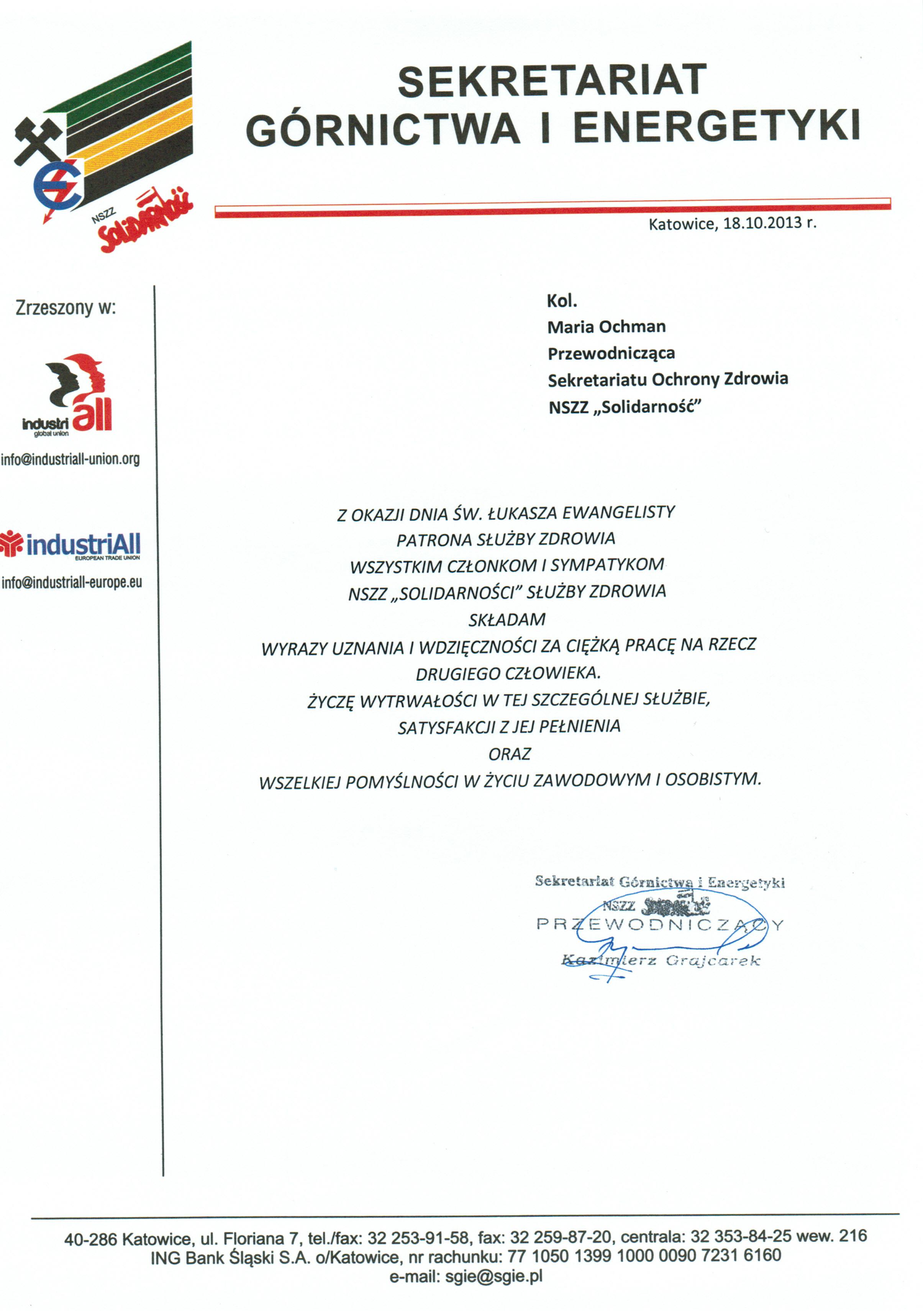2013-10-14 15:13Życzenia dla Pracowników Służby Zdrowia