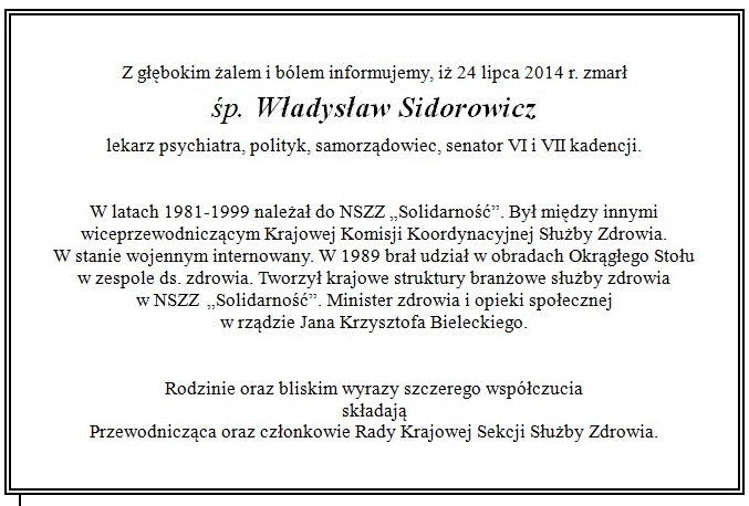 Na Cmentarzu Osobowickim we Wrocławiu w upalne sobotnie południe setki osób pożegnały doktora Władysława Sidorowicza, lekarza, działacza związkowego, twórcę samorządu lekarskiego, byłego ministra zdrowia i senatora dwóch kadencji.