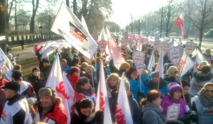 Blisko 2 tys. związkowców z oświatowej „Solidarności” protestowało 9 grudnia przed Kancelarią Prezesa Rady Ministrów przeciwko zamrożeniu płac w oświacie i całej sferze budżetowej na kolejny już 2015 r. Powodem akcji protestacyjnej był brak pozytywnej reakcji rządu RP na postulat 9 proc. podwyżki płac dla nauczycieli i innych pracowników „budżetówki”. Związkowcy domagali się także wyższych nakładów na oświatę, zaprzestania prywatyzacji szkół i łamania prawa oświatowego przez samorządy. Pikietę rozpoczęło przedstawienie protestacyjne pod tytułem „Godna praca, godna płaca, czyli Siłaczka – Biedaczka tragedia wcale nieantyczna” przygotowane przez związkowców z Lublina i Ostrowca Świętokrzyskiego.