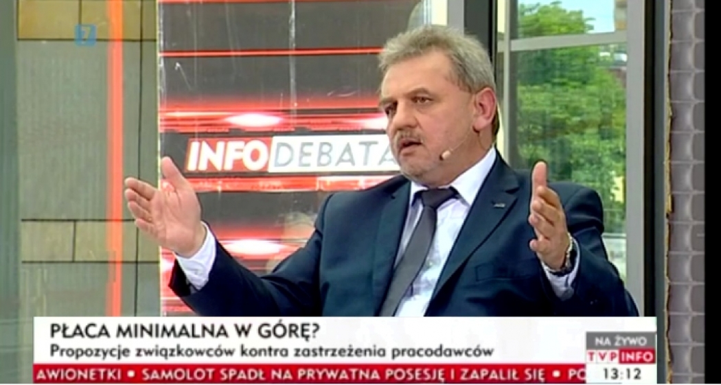 31 maja br. w TVP Info Henryk Nakonieczny był gościem Debaty Trójstronnej, której tematem było m.in. podwyższenie płacy minimalnej.