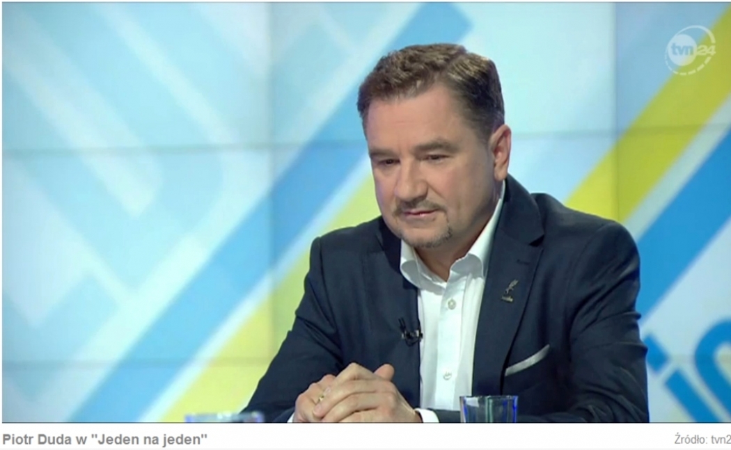 Nie kandyduję w wyborach prezydenckich. Nie przekona mnie nawet Jarosław Kaczyński - powiedział w "Jeden na jeden" szef "Solidarności" Piotr Duda. Odniósł się w ten sposób do sondażu PiS, z którego wynika, że mógłby przejść do drugiej tury wraz z Bronisławem Komorowskim.