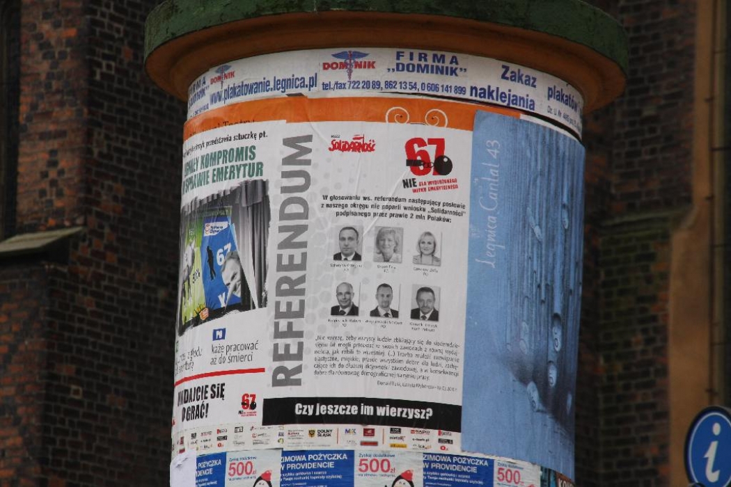 Dziennikarze pytali o konflikt ze spółka, która odmówiła rozwieszania plakatów z wizerunkami posłow głosujących przeciwko referendum dotyczącym wieku emerytalnego. Według przewodniczącego Piotra Dudy sprawa jest jasna, spółka która odmówiła rozwieszenia plakatów należy do miasta. Miasta rządzonego przez PO.