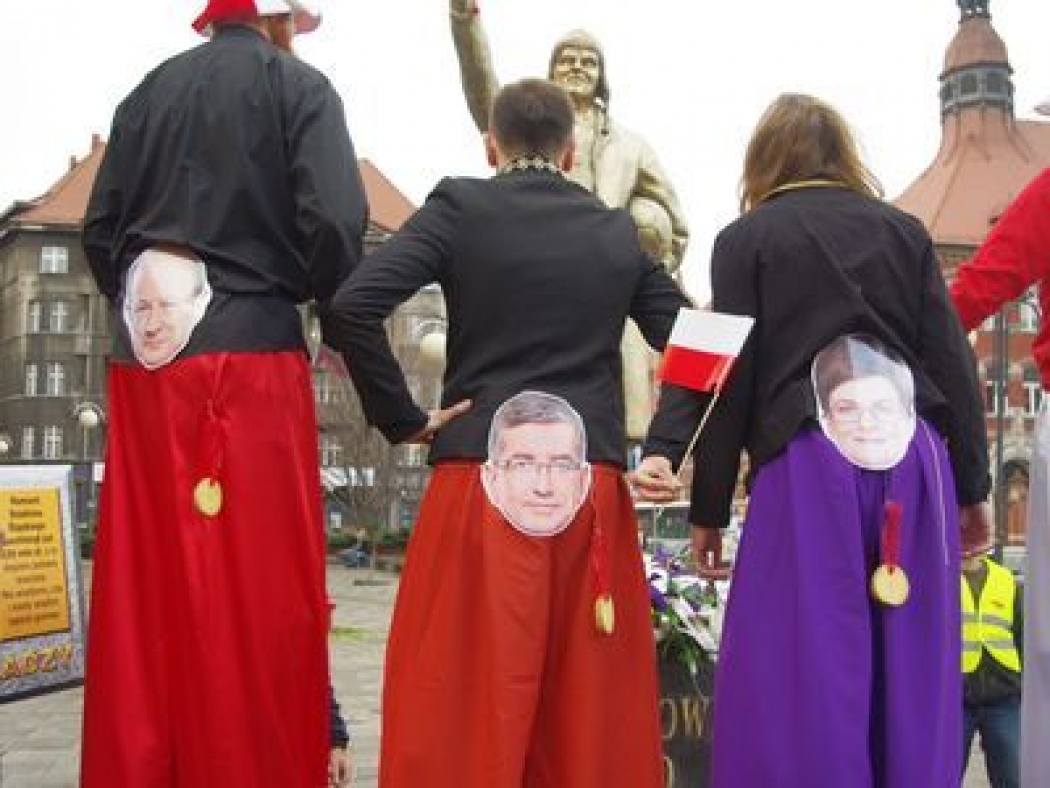 Akademię zaszczycili swą obecnością towarzysze premiera, współtwórcy pomników rządów Platformy Obywatelskiej z w regionie i w kraju - minister edukacji Krystyna Szumilas, szef regionalnych władz Partii i wiceminister górnictwa Tomasz Tomczykiewicz, maestro kolejnictwa śląskiego Adam Matusiewicz, minister od portfeli, czyli Jacek Rostowski oraz minister zdrowia Bartosz Arłukowicz. Przybyli na szczudłach, aby móc swobodnie spoglądać na ludzi z wysoka. Żeby jednak wyborcy mogli ich dojrzeć, swoje wizerunki umieścili poniżej pleców. Podczas akademii zostali za swe ogromne zasługi odznaczeni wysokimi orderami z kartofla. Nie zabrakło oczywiści czerwonych goździków dla odznaczonych i dodatkowe obowiązkowej pary rajstop dla pani minister.