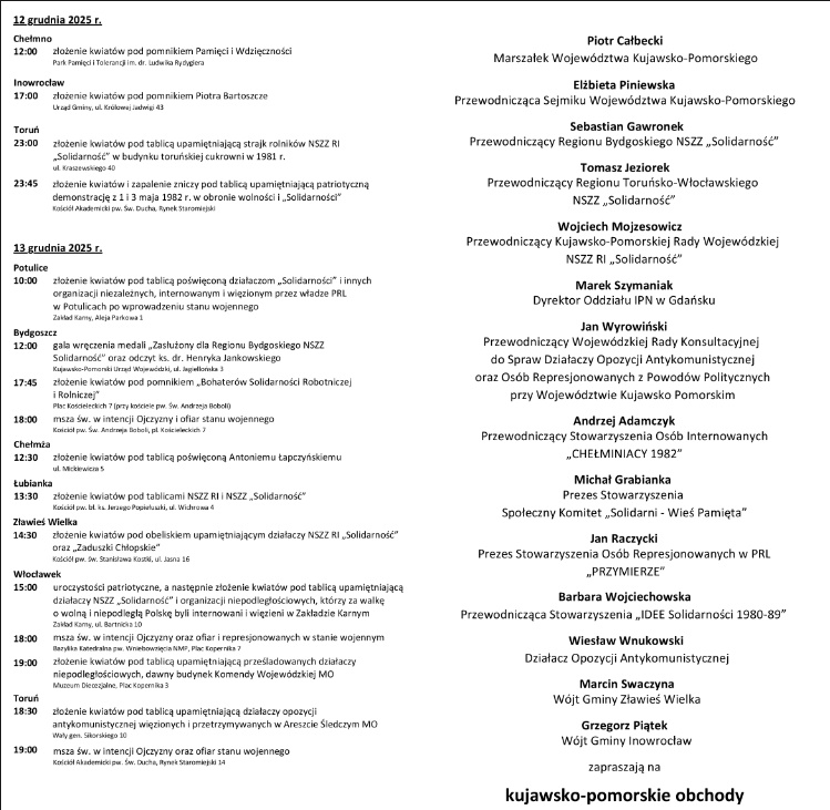 Wprowadzenie stanu wojennego przerwało pionierski okres działalności NSZZ „Solidarność” w województwie toruńskim. Charakterystycznym epizodem początkowych godzin było zajęcie siedziby Zarządu Regionu przez oddział ZOMO, co zostało połączone z niespotykaną dewastacją pomieszczeń i wszelkiego sprzętu tam się znajdującego.