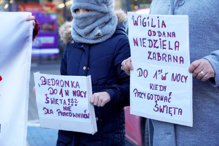 18 grudnia handlowa Solidarność rozpoczęła akcję protestacyjną, która ma zwrócić uwagę na bardzo trudną sytuację pracowników tej branży w okresie przedświątecznym. Protest zainaugurowano w Katowicach przed jednym ze sklepów sieci Biedronka.