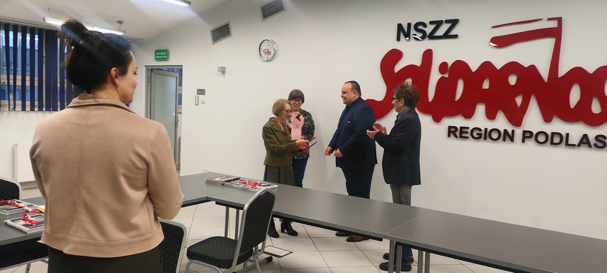 W sali konferencyjnej Regionu Podlaskiego NSZZ "Solidarność" odbyło się spotkanie integracyjne zorganizowane przez Komisję Zakładową NSZZ "Solidarność" Pracowników Uniwersytetu w Białymstoku. Przybyłych przywitała przewodnicząca Agnieszka Dzięcioł-Pędich.