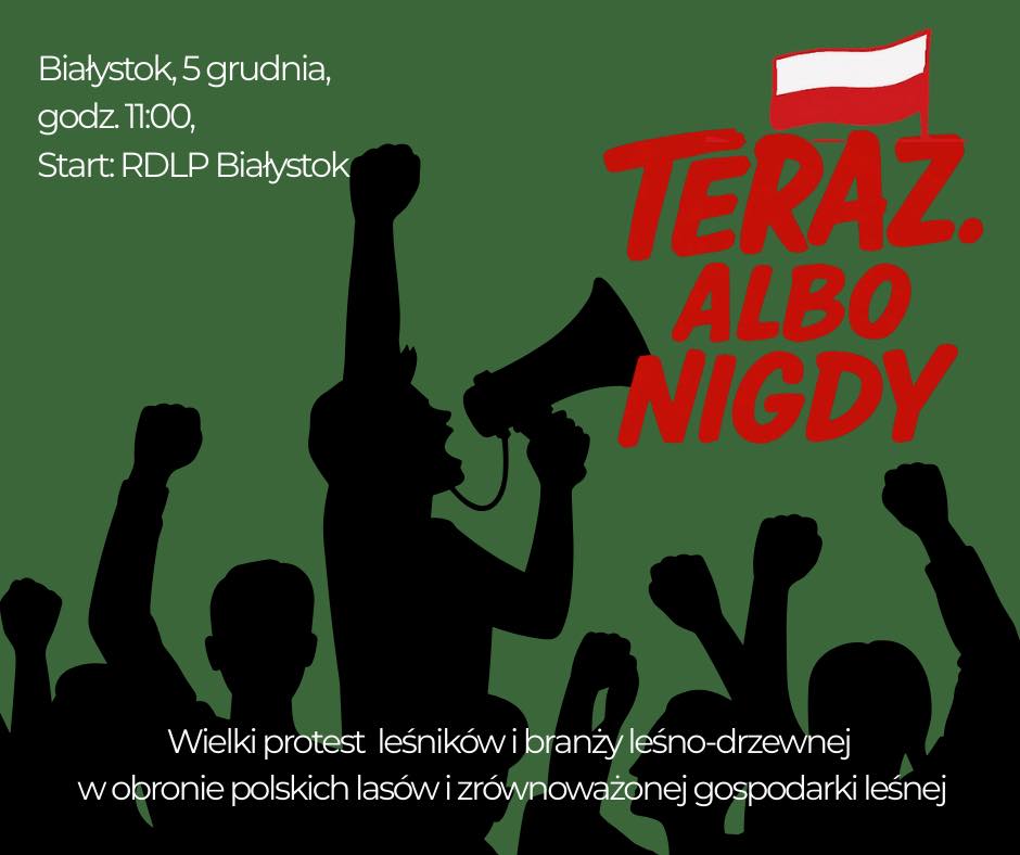 Leśnicy zamierzają wyrazić swój sprzeciw wobec działań Ministerstwa Klimatu i Środowiska oraz Regionalnej Dyrekcji Ochrony Środowiska w Białymstoku, które ich zdaniem hamują rozwój Podlasia. Manifestacja ulicami Białegostoku została zaplanowana na 5 grudnia 2025 r.
