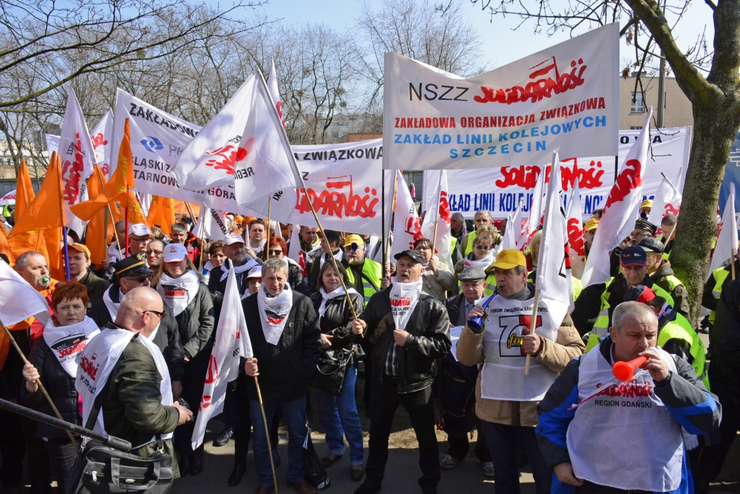 Ponad tysiąc osób z różnych części Polski wzięło udział 24 marca w pikiecie protestacyjnej pod siedzibą PKP S.A. w Warszawie. W ten sposób kolejarze bronili swoich miejsc pracy. Demonstracja była również wyrazem sprzeciwu wobec planów prywatyzacji kolejnych kolejowych spółek.