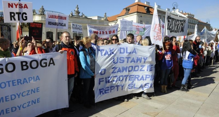 12 października br. znów było gorąco przed Ministerstwem Zdrowia. "Ministrze serce nie masz”, „Służba zdrowia – największy biznes wszechczasów”, „Recepta Zembali – upadłość szpitali”, „Żądamy dialogu społecznego”, „Jesteśmy razem” – z takimi hasłami ponad tysiąc związkowców z "Solidarności" ratowników medycznych i innych pracowników służby zdrowia z całej Polski domagało się równego traktowania, zerwania z plagą umów śmieciowych, zaprzestania dalszej komercjalizacji i prywatyzacji sektora oraz podwyżek płac dla wszystkich pracowników sektora ochrony zdrowia.