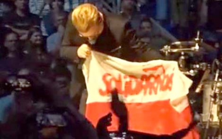 Piękny gest lidera U2. Bono ucałował flagę "Solidarności"