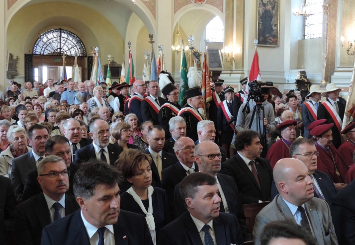 Uroczystej mszy świętej przewodniczył biskup Edward Janiak, ordynariusz diecezji kaliskiej, który nawoływał do ochrony rodziny i życia, zarówno tego poczętego, a także tego u schyłku swoich dni. Homilię wygłosił ks. Sławomir Kęszka. Przypomniał on o robotnikach, którzy wielokrotnie walczyli o godną pracę i płacę. – Stajemy w postawie wdzięczności Panu Bogu za dar wolności, chleba i pracy. Oni przecież upominali się o Boga, o wolność, o chleb, o godziwe zarobki. Pamiętamy tych wszystkich, którzy oddali swe życie za wolność Polski i poszanowanie godności ludzkiego życia.