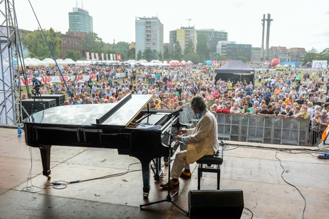 Przed chwilą skończył grać Maciej Miecznikowski z zespołem. Koncert na scenie piknikowej rozpoczął się o godz. 15.00 występem zespołu PapaD. Na scenie pojawił się też grajacy na fortepianie Maciej Markiewicz. Około godz. 18.00 na scene wejdzie Boney M.