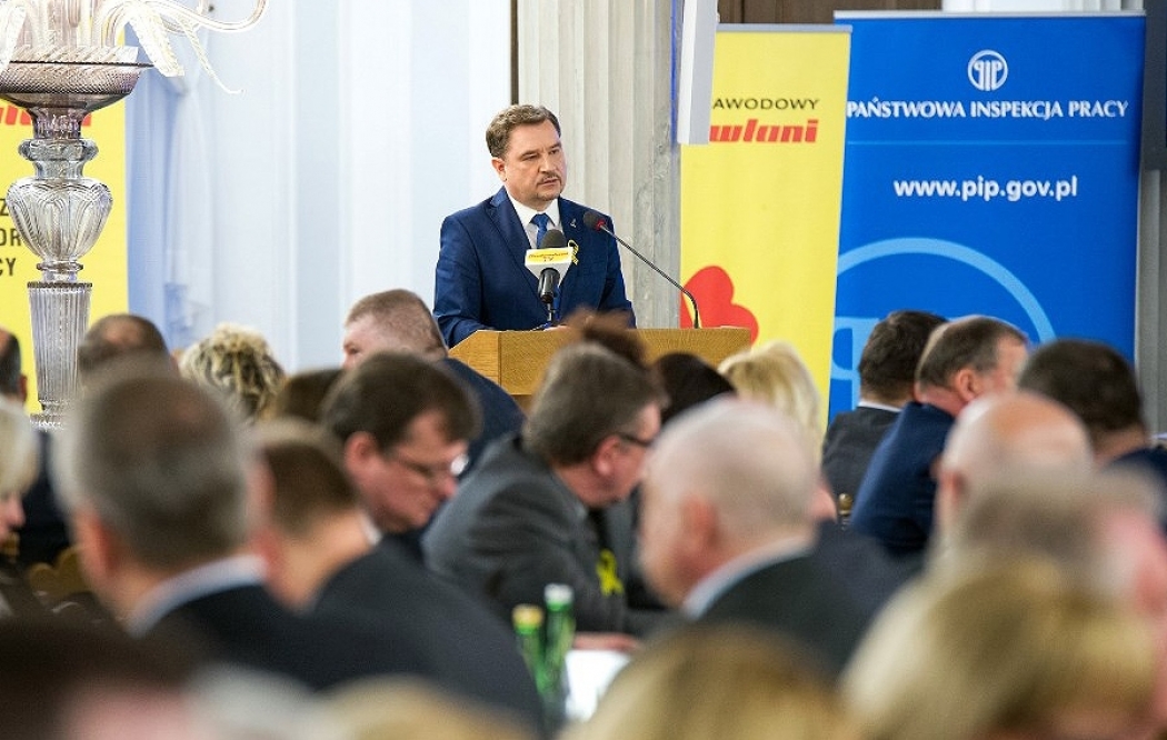 - Zakład pracy to nasze drugie miejsce, w którym spędzamy połowę życia i wszyscy pracownicy chcą szczęśliwie wrócić do domu, ale niestety nie zawsze tak bywa - powiedział Piotr Duda. Podkreślił rolę Rady Ochrony Pracy w dbaniu o bezpieczeństwo pracownika ale także rolę Rady Dialogu Społecznego. Przypomniał zerwanie rozmów w Trójstronnej Komisji w 2013 r. oraz to, że nie przypuszczał wówczas, że po dwóch latach związki zawodowe, pracodawcy i rząd będą razem pracować w RDS, na podstawie ustawy, która, jak żadna inna, została przyjęta przez Sejm w absolutnym konsensusie.