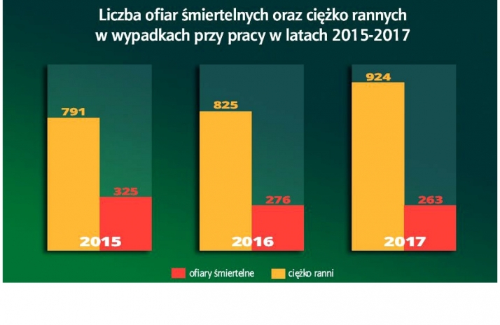 W 2017 roku w wyniku wypadków przy pracy śmierć poniosły 263 osoby, a ponad 900 doznało trwałego uszczerbku na zdrowiu – wynika z danych Państwowej Inspekcji Pracy.