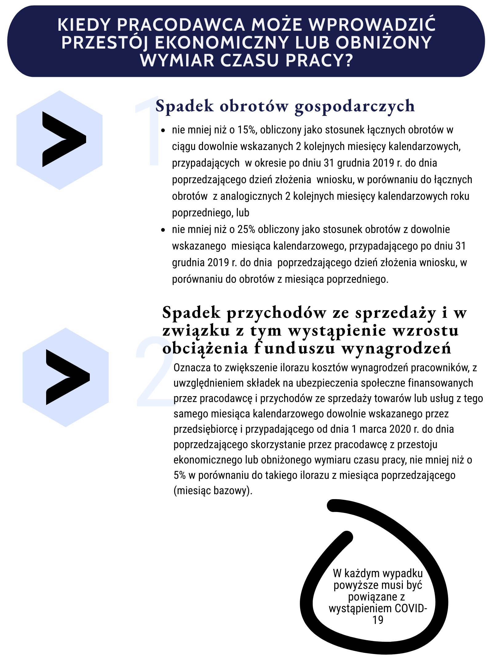 Poniżej infografika - przesłanki przestoju i obniżonego wymiaru czasu pracy.