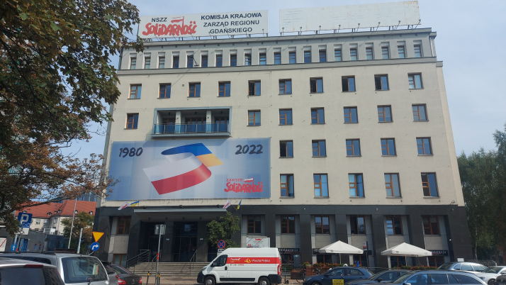 Na budynku Komisji Krajowej w Gdańsku zawisł baner zapowiadający zbliżające się uroczystości sierpniowe. W tym roku program obchodów rocznicy Sierpnia 1980 i powstania Solidarności organizowanych przez KK NSZZ "S" oraz Region Gdański NSZZ "S" jest niezwykle bogaty.