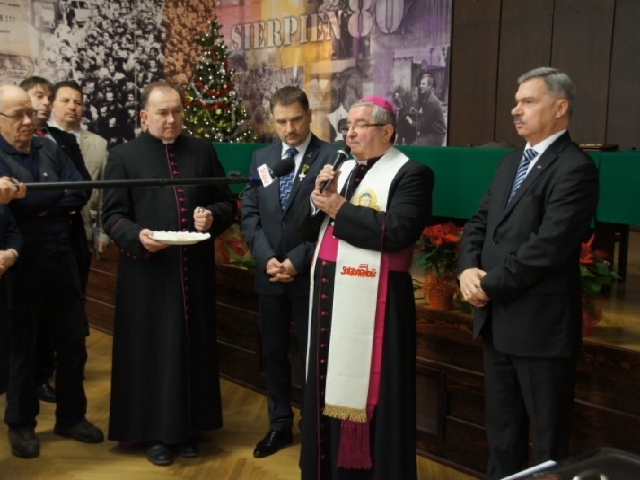 Kolędy w wykonaniu Elizy Banasik, stypendystki Regionu Gdańskiego, rozpoczęły tradycyjne spotkanie opłatkowe w Sali BHP. Wzięli w nim udział członkowie Komisji Krajowej, pracownicy KK oraz Regionu Gdańskiego. Modlitwę na początku spotkania poprowadził abp Sławoj Leszek Głódź.
