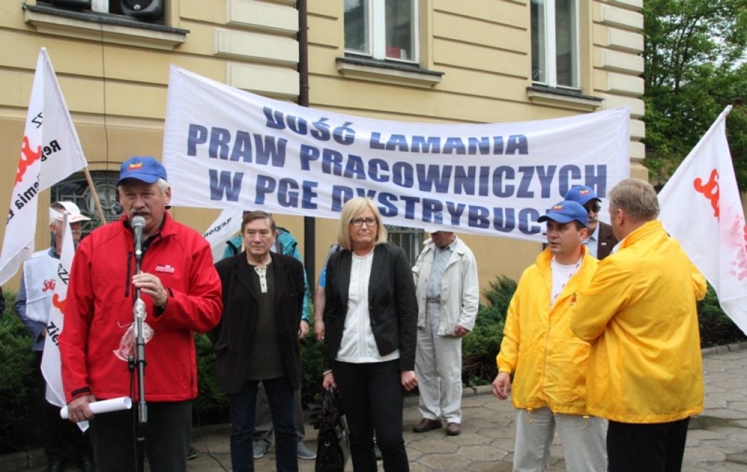 "Jesteśmy tu dlatego że dalej łamane są prawa pracownicze i prawa związkowe." Wczoraj przed siedzibą łódzkiego oddziału zakładu PGE Dystrybucja pikietowała "Solidarność" , akcję protestacyjną wsparli przedstawiciele pozostałych związków zawodowych działających w PGE oraz przedstawiciele Zarządu Regionu Ziemi Łódzkiej NSZZ „Solidarność”, związkowcy z innych branż łódzkiej „Solidarności”, a także przedstawiciele Sekcji Krajowej Energetyki NSZZ „Solidarność”.