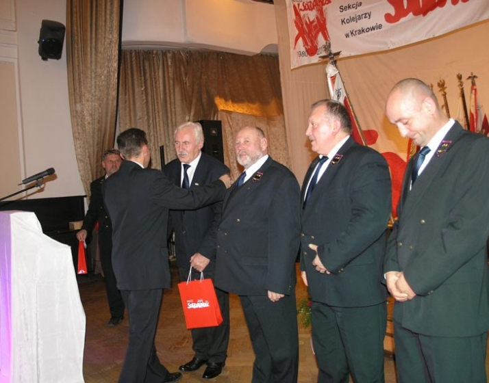 Świętowanie jednak nie było zbyt wesołe, gdyż co chwilę przywoływano fatalną sytuację na polskich kolejach. Mówił o tym w czasie uroczystego posiedzenia Regionalnej Sekcji Kolejarzy w Krakowie, jej przewodniczący Henryk Sikora, o niszczeniu struktur kolei, o lekceważeniu klientów, o wyprowadzaniu pracy i siedzib zakładów poza nasz region i o reakcji małopolskich związkowców, którzy zawsze aktywnie włączali się w akcje organizowane przez struktury branżowe, regionalne i krajowe. – Dwa protesty głodowe, kilkanaście blokad torów i pikiet, strajków, akcji ulotkowych oraz różnych form walki w interesie pracowników kolei, to nasza walka – wyliczał przewodniczący Sekcji.