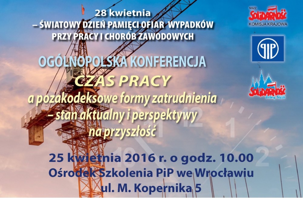 10.45 – 12.00 referaty wygłoszą m.in.: przedstawiciel Pracodawców, przedstawiciel Państwowej Inspekcji Pracy, przedstawiciele Centralnego Instytutu Ochrony Pracy, Przewodniczący Zarządu Regionu Dolny Śląsk NSZZ „Solidarność”
