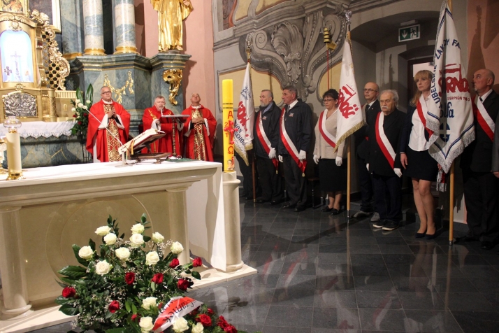 Mszę św. koncelebrowało trzech kapłanów. Homilię wygłosił Regionalny Duszpasterz Ludzi Pracy, ks. prał. Zbigniew Kuzia, który przypomniał wiele istotnych prawd z kazań ks. Popiełuszki. Duchowny zaznaczył, że dzisiaj powinniśmy sięgać do nauk głoszonych przez kapelana Solidarności, gdyż zawierają one ważne i ponadczasowe przesłanie. Ks. Kuzia podkreślił, że Patron Solidarności poniósł najwyższą ofiarę – poświęcając swoje życie - za wartości i to, w co wierzył. Ks. Jerzy nauczał, aby zło dobrem zwyciężać i według tej zasady żył.