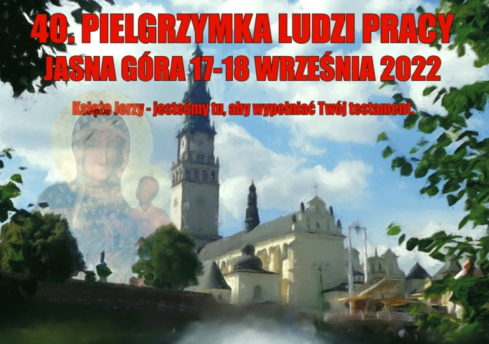 Już jutro rozpoczyna się 40. Ogólnopolska Pielgrzymka Ludzi Pracy na Jasną Górę, odbędzie się 17-18 września br. Hasło tegorocznej pielgrzymki to: „Księże Jerzy - jesteśmy tu, aby wypełnić Twój testament”.