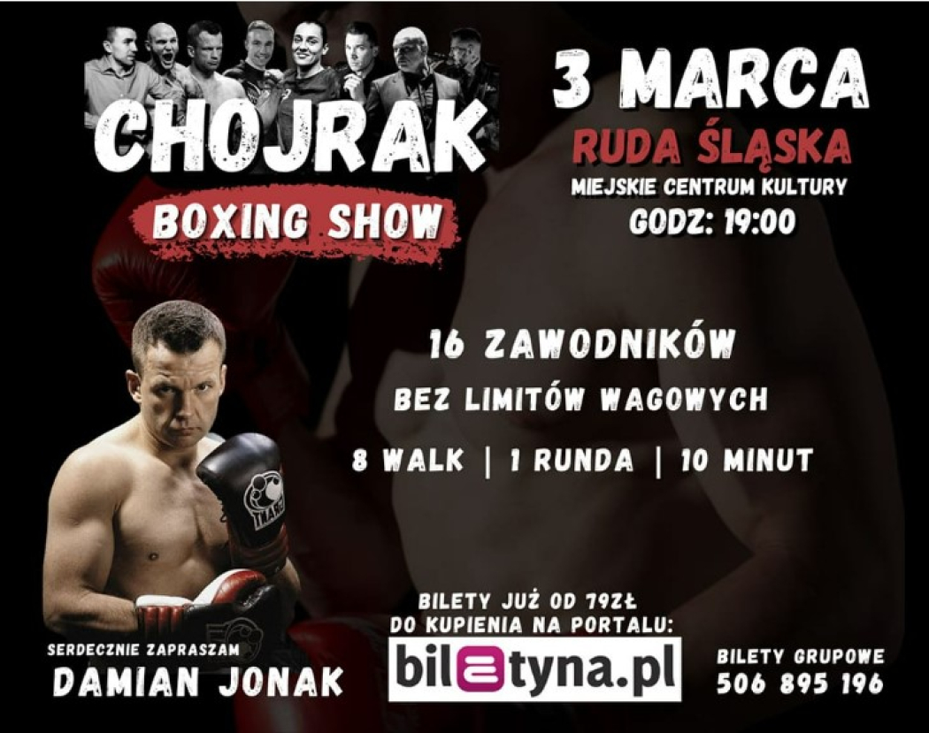 3 marca o godz. 19.00 w Miejskim Centrum Kultury w Rudzie Śląskiej odbędzie się Chojrak Boxing Show.