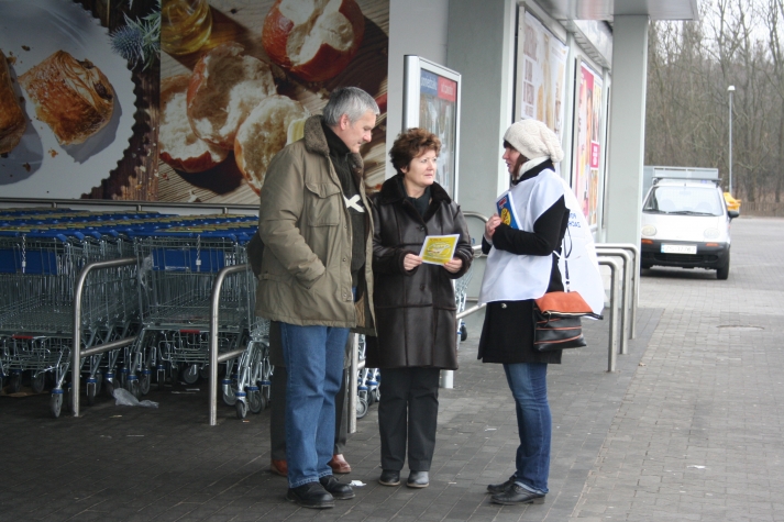 Pomimo niesprzyjającej aury związkowcy stawili się punktualnie o 10, wyposażeni w ulotki, koszulki i mnóstwo entuzjazmu, przed wskazanymi sklepami. Ulotki były wręczane osobom, które wychodziły ze sklepu lub dopiero przyjechały na zakupy. Zazwyczaj, po kilku słowach wyjaśnienia, w jakim celu akcja jest prowadzona, przyjmowali je chętnie, a nawet od razu rzucali okiem. Często pojawiały się również komentarze, że słyszeli i wiedzą o złej sytuacji pracowników, potępiają działania właścicieli, ale przychodzą do Lidla ze względu na niskie ceny.