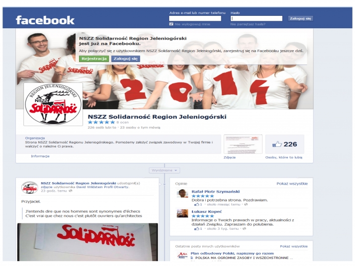 Dzięki Waszej pomocy informacje o związkowej działalności będą docierać do szerokiej rzeszy użytkowników portali społecznościowych, a szczególnie do młodych odbiorców. Już dzisiaj zauważamy, że nasza strona na portalu społecznościowym jest zdecydowanie częściej odwiedzana niż strona internetowa www.soljg.eu