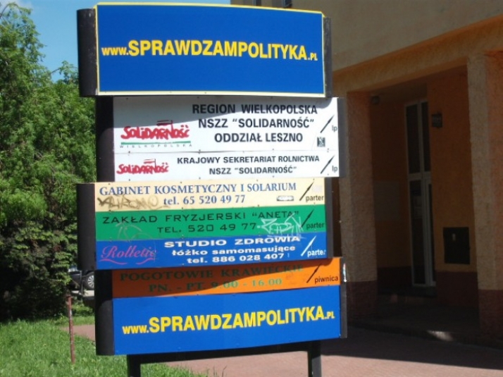 Ulotki rozdawane są również w zakładach pracy, w których działa Związek. Na budynku siedziby „Solidarności” został wywieszony baner informujący społeczeństwo o polityku, który „OSZUKAŁ WYBORCÓW”. Na tablicy informacyjnej widnieje napis www.sprawdzampolityka.pl.