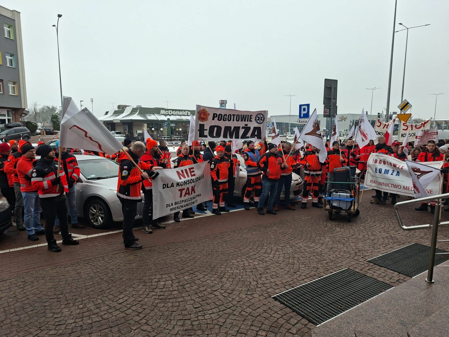 W dniu dzisiejszym odbyła się pikieta pracowników Państwowego Ratownictwa Medycznego. Był to wyraz sprzeciwu przeciwko planowanej przez władze województwa podlaskiego konsolidacji Wojewódzkich Stacji Pogotowia Ratunkowego w Białymstoku, Łomży i Suwałkach z obciążonymi dużym zadłużeniem szpitalami podległymi Samorządowi Województwa Podlaskiego.