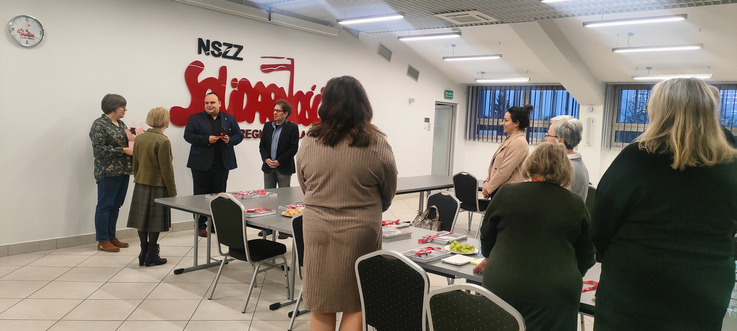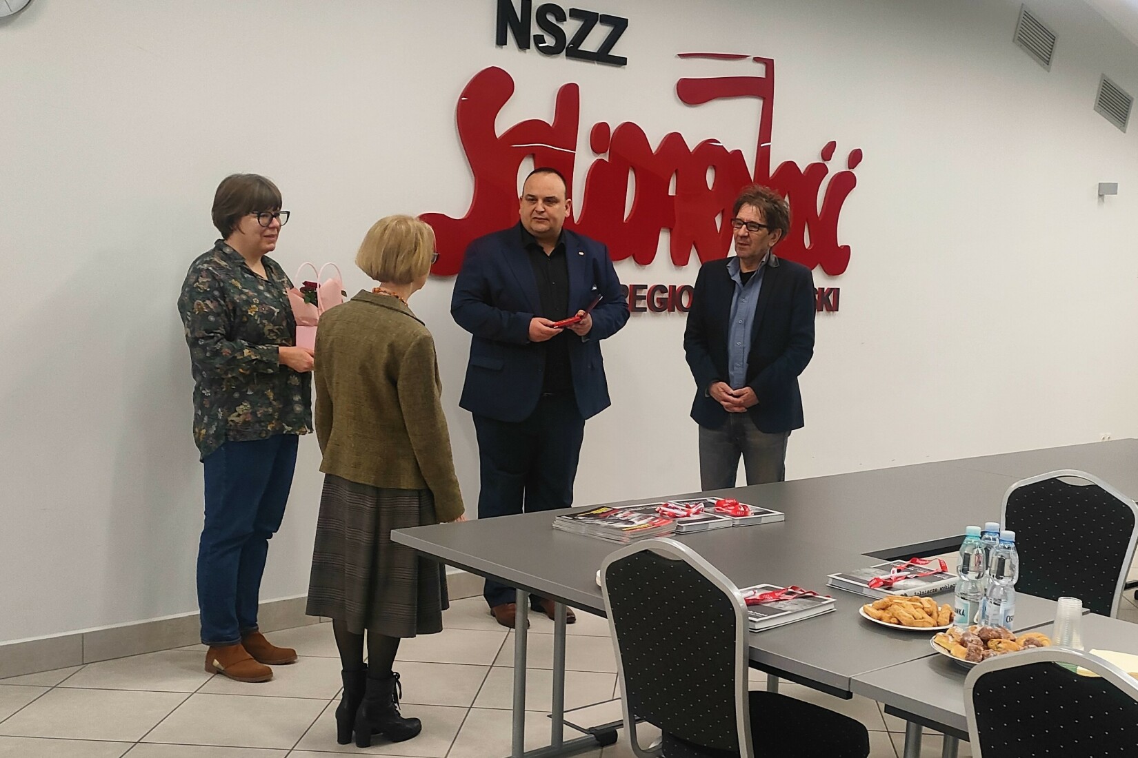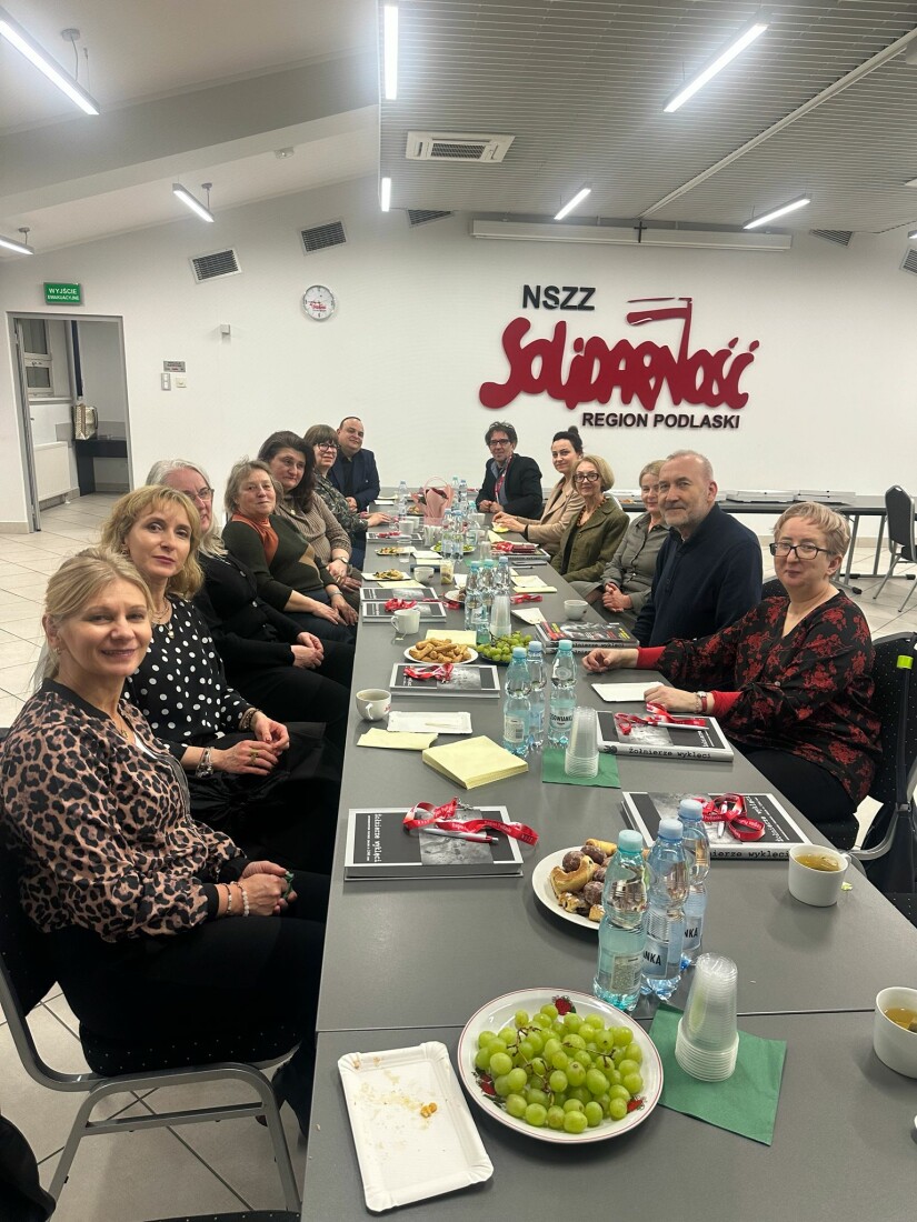 W sali konferencyjnej Regionu Podlaskiego NSZZ "Solidarność" odbyło się spotkanie integracyjne zorganizowane przez Komisję Zakładową NSZZ "Solidarność" Pracowników Uniwersytetu w Białymstoku. Przybyłych przywitała przewodnicząca Agnieszka Dzięcioł-Pędich.