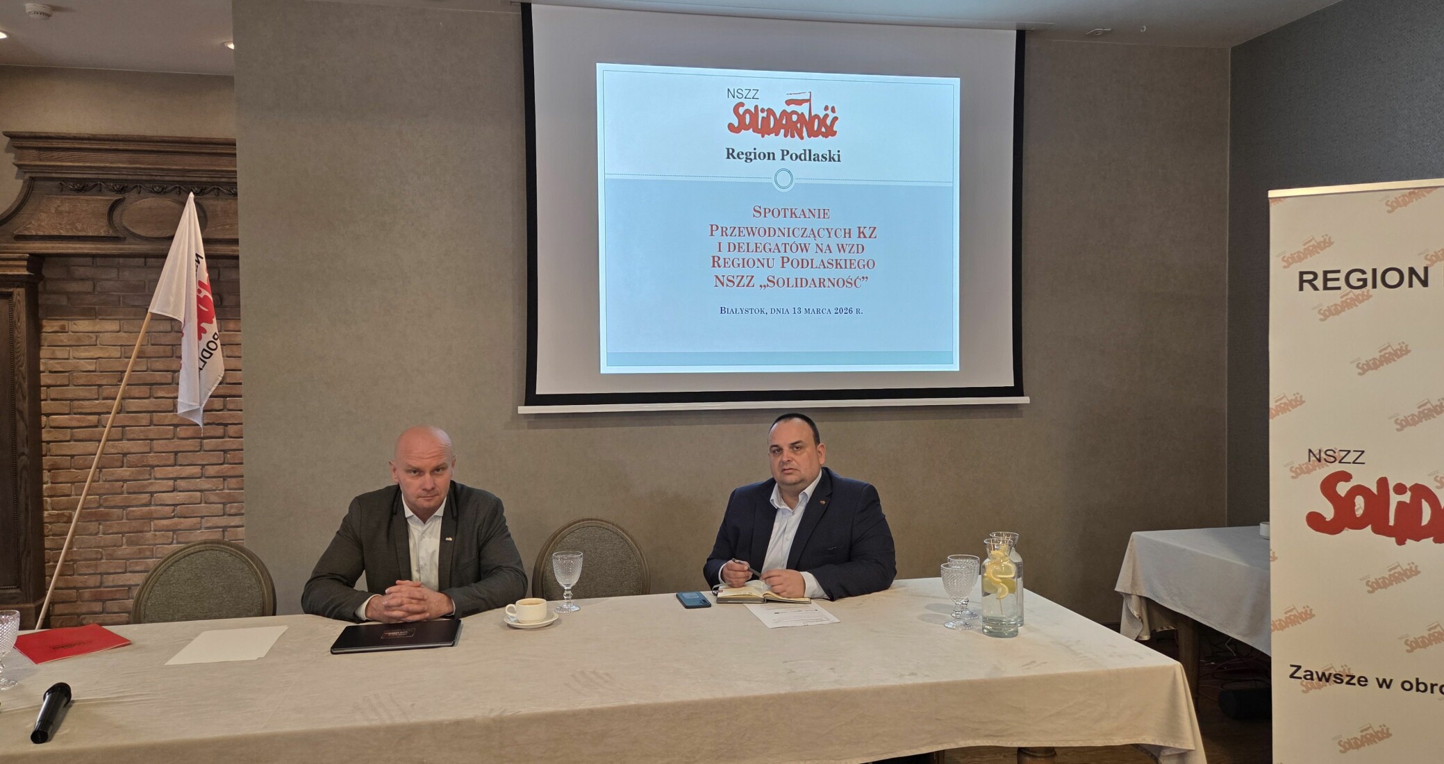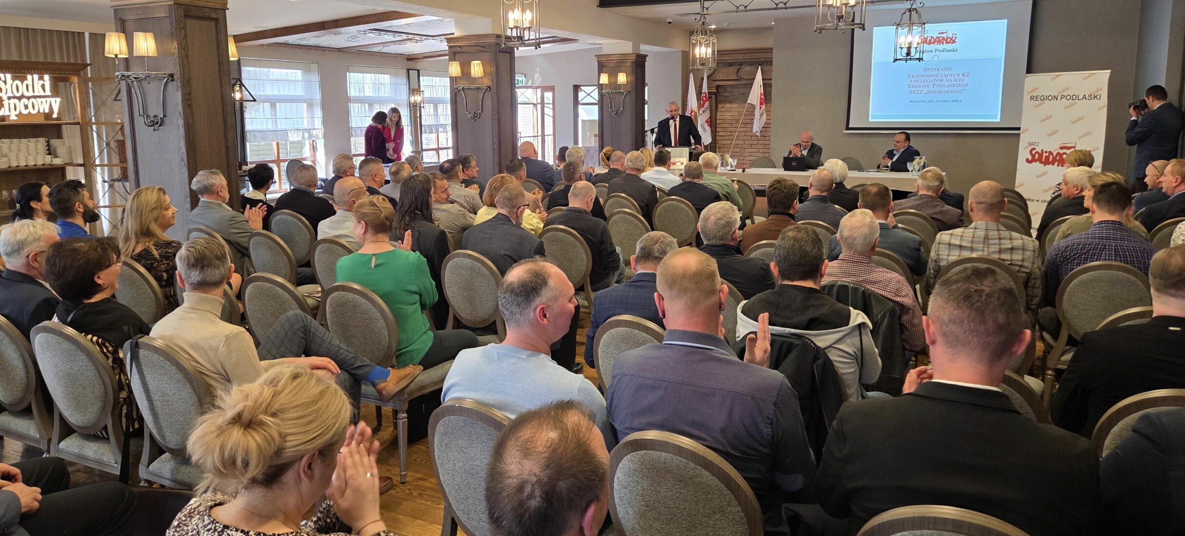 Blisko 100 osób uczestniczyło w piątek 13 marca br. w spotkaniu przewodniczących Komisji Zakładowych oraz delegatów Regionu Podlaskiego NSZZ „Solidarność”. Gościem spotkania był zastępca przewodniczącego Komisji Krajowej NSZZ „Solidarność” Bartłomiej Mickiewicz, który przedstawił aktualne informacje dotyczące działalności Komisji Krajowej oraz najważniejsze kierunki działań związku w najbliższym czasie.