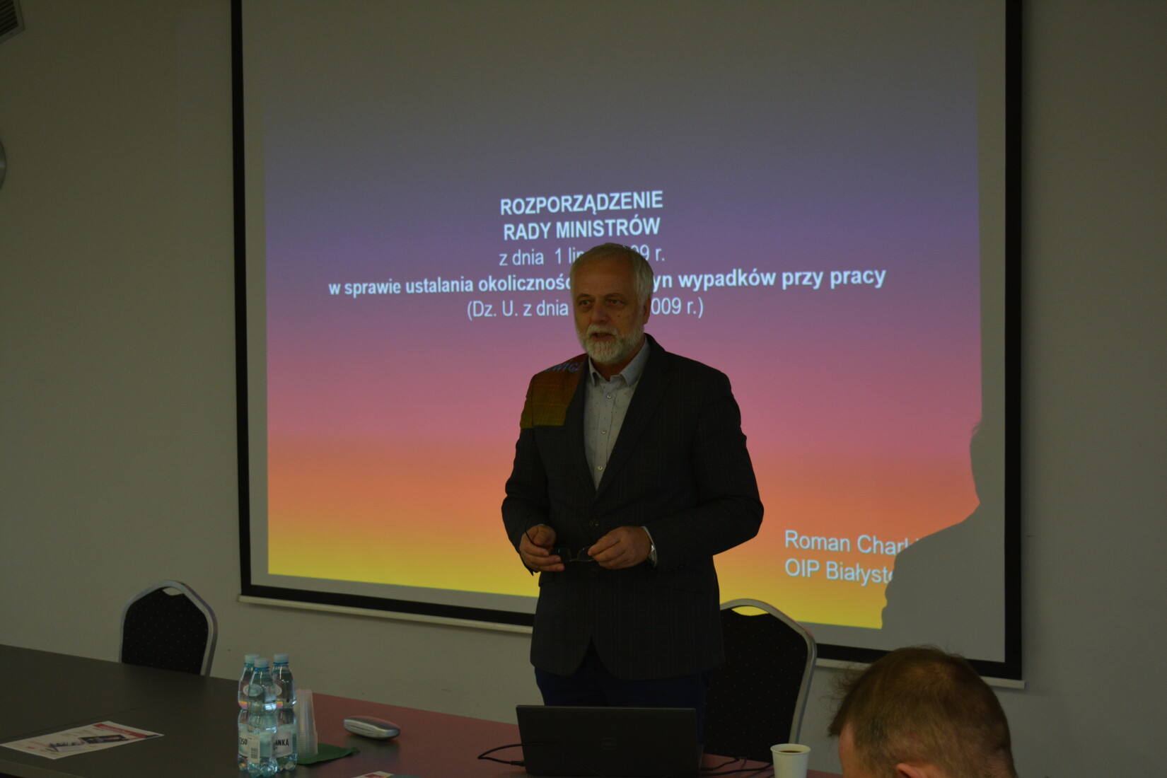 Te i wiele innych zagadnień z zakresu bezpieczeństwa i higieny pracy poruszył nadinspektor Roman Charkiewicz z Okręgowego Inspektoratu Pracy w Białymstoku. Było to drugie spotkanie w ramach dwuletniego cyklu szkoleń Klubu Społecznego Inspektora Pracy organizowanego przez Region Podlaski we współpracy z Państwową Inspekcją Pracy.