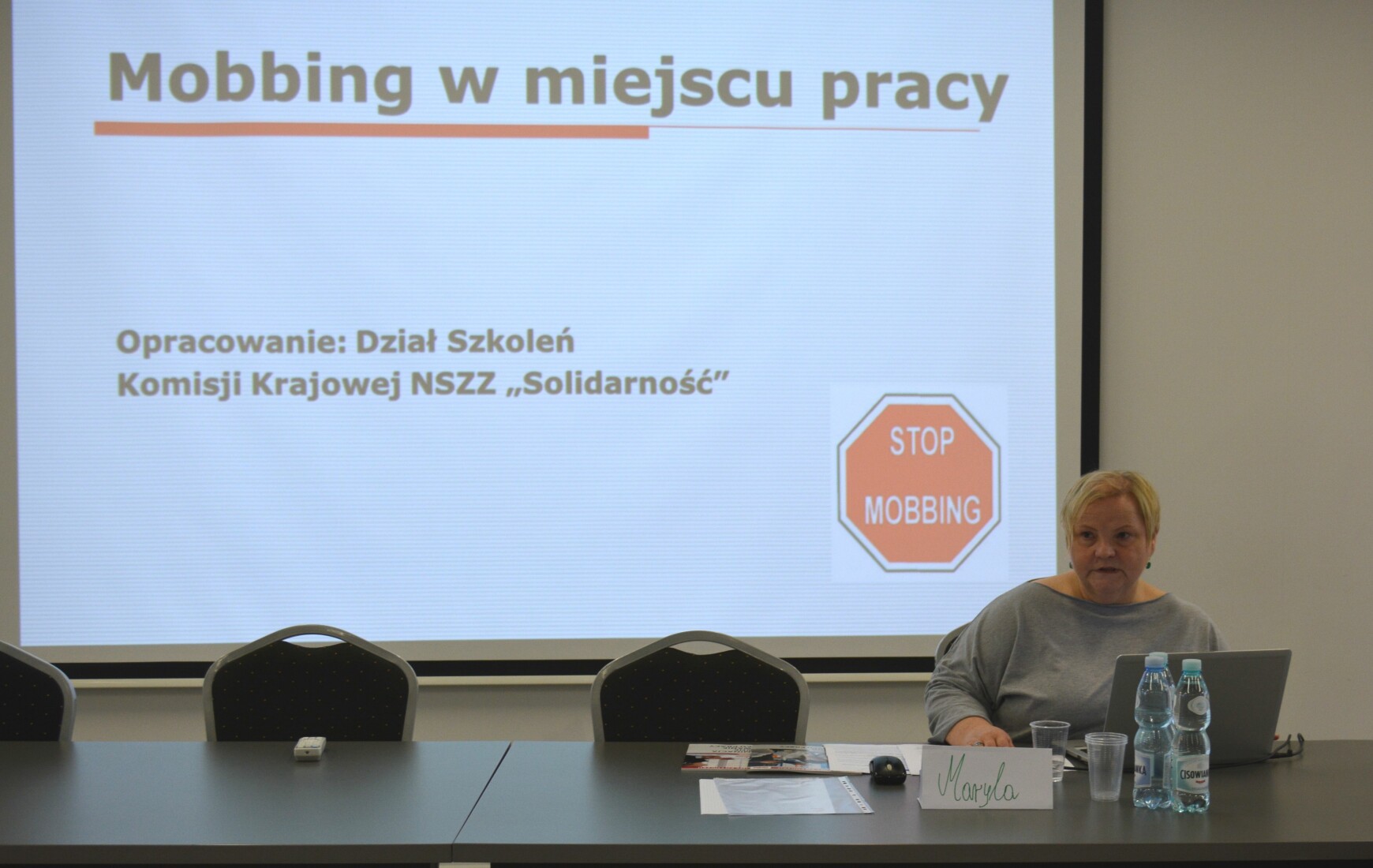 Odpowiedzi na te i wiele innych pytań z zakresu mobbingu i dyskryminacji udzieliła Maria Kościńska, trener Komisji Krajowej NSZZ "Solidarność" podczas rozpoczętego w dniu dzisiejszym, dwudniowego szkolenia związkowego. Uczestnicy szkolenia, oprócz porcji wiedzy, otrzymali również podręczniki przygotowane przez Komisję Krajową. Podręczniki te są w całości poświęcone zjawisku mobbingu oraz dyskryminacji.