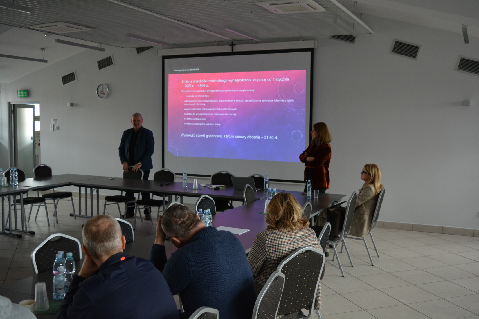 Prelegentów powitał Eugeniusz Formejster, wiceprzewodniczący Regionu Podlaskiego NSZZ „Solidarność”.  Szkolenie podzielone zostało na dwie części. W części pierwszej poprowadzonej przez Panią Martę Baczar uczestnicy poznali najnowsze zmiany w zakresie wynagrodzenia za pracę, zaś w części drugiej dzisiejszego szkolenia Pani Beata Kalinowska przedstawiła obowiązujące obecnie przepisy o układach zbiorowych pracy i porozumieniach zbiorowych.
