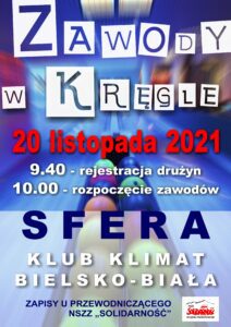 Jak już informowaliśmy pod koniec listopada 2021 r. w bielskim klubie „Klimat” odbyły się zawody drużynowe w kręgle o Puchar Przewodniczącego NSZZ „Solidarność” Podbeskidzie. (więcej…)