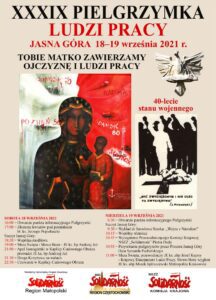 W dniach 18 i 19 września br. odbędzie się 39 Pielgrzymka Ludzi Pracy na Jasną Górę. Podbeskidzka "Solidarność" organizuje wspólny wyjazd związkowców na niedzielną Mszę świętą, będącą najważniejszym punktem tej