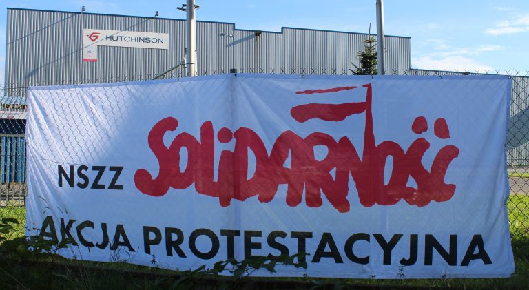 Na bramach bielskiego zakładu spółki Hutchinson Poland zawisły związkowe flagi i transparenty. To znak, że