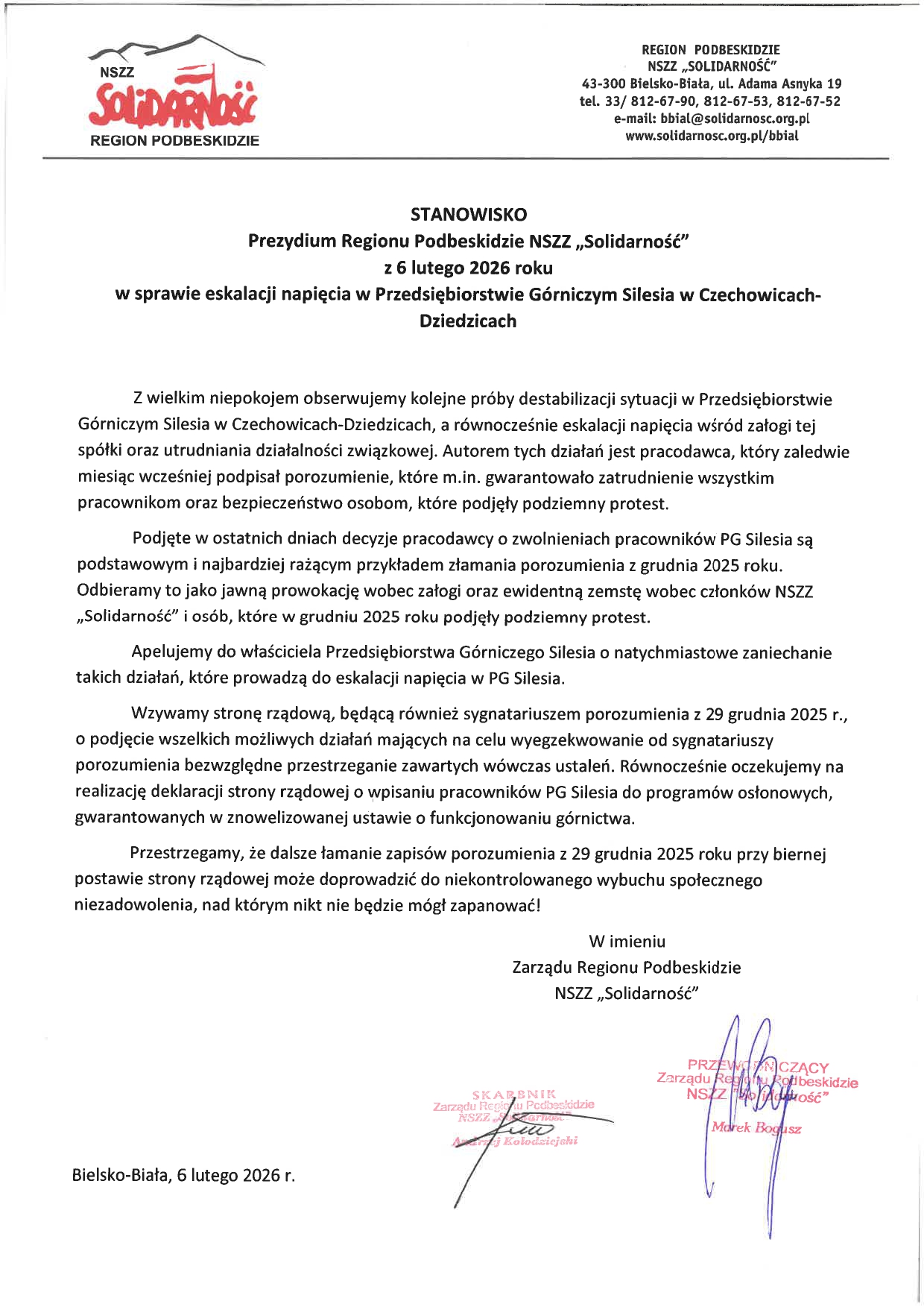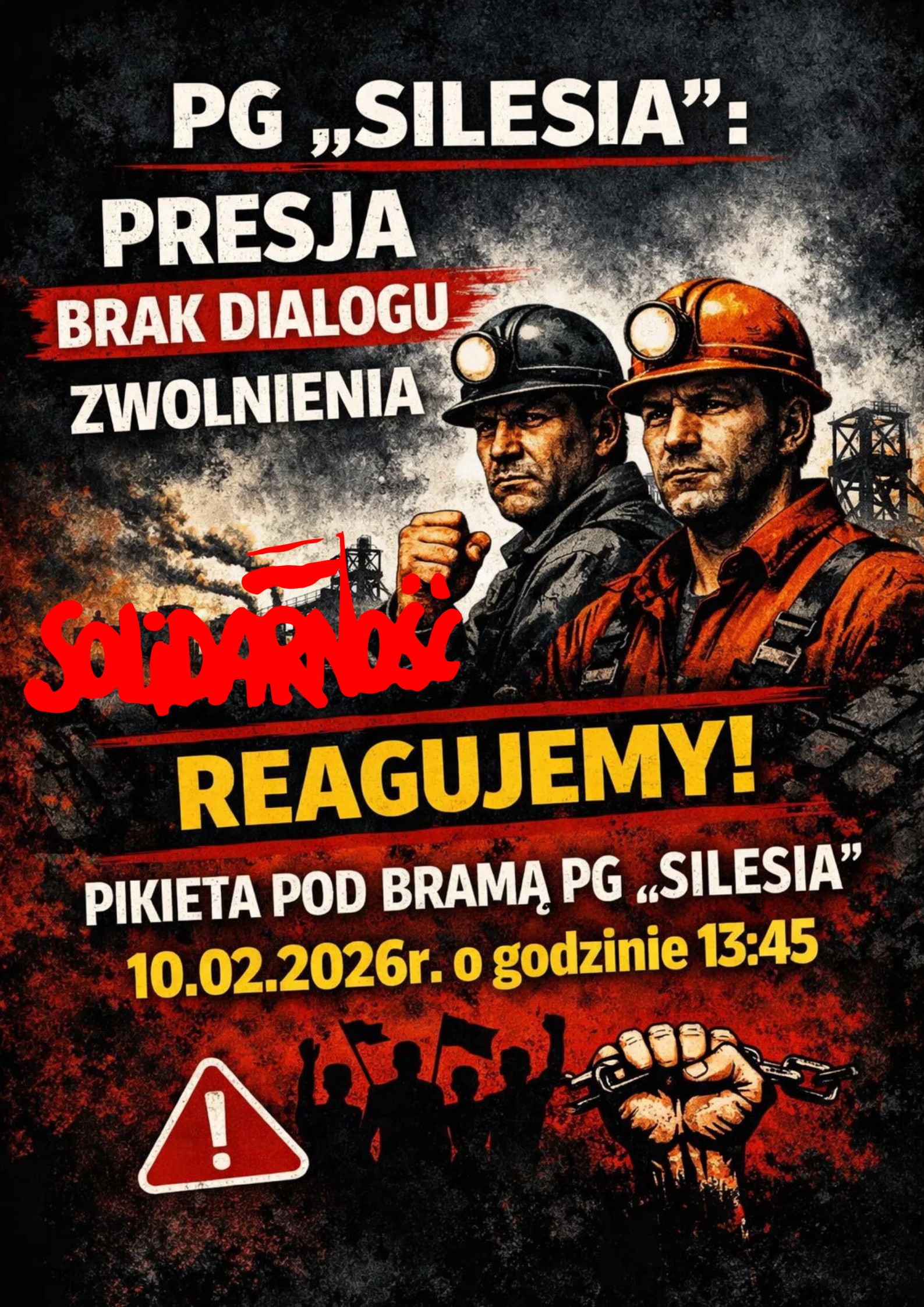 Solidarność Podbeskidzie PIKIETA W OBRONIE PRACOWNIKÓW PG „SILESIA” – 10 LUTEGO > CZYTAJ CAŁOŚĆ 5 lutego, 2026