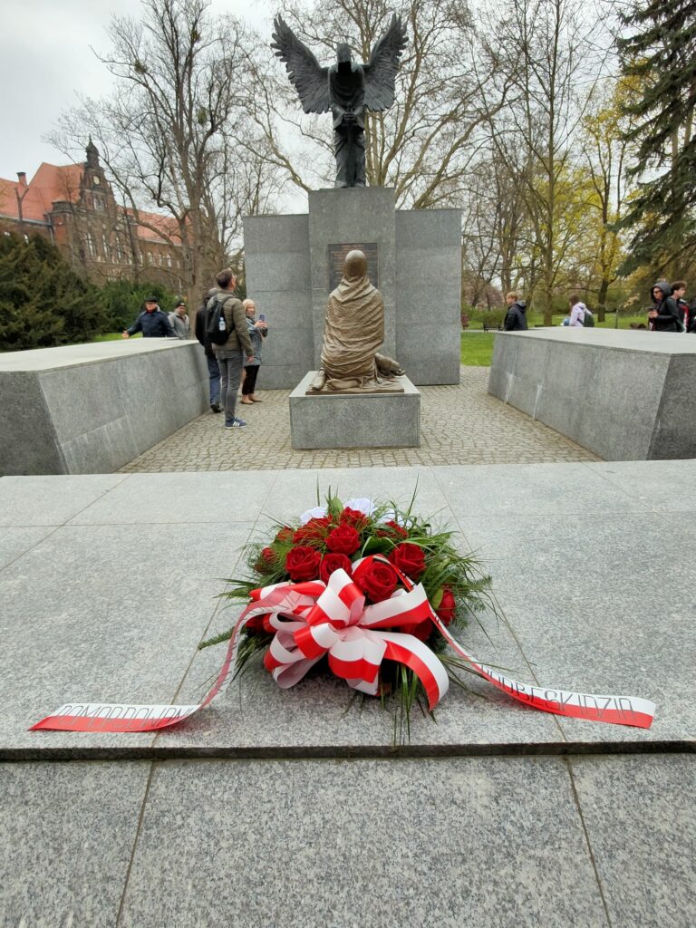 Ważnym punktem wyjazdu było złożenie przez młodzież kwiatów pod wstrząsającym Pomnikiem Katyńskim we Wrocławiu – w związku z przypadającym za kilka dni (13 kwietnia) Dniem Pamięci Ofiar Zbrodni Katyńskiej.